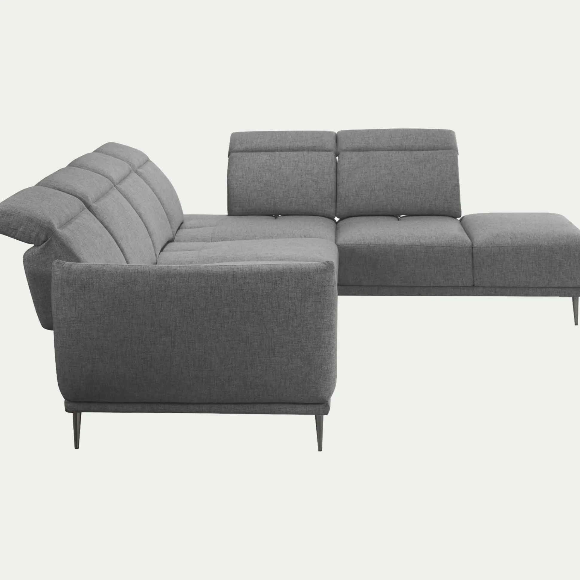 Optez pour ce canapé d’angle droit 5 places fabriqué en Roumanie. Il arbore un design sobre et chic, ainsi qu’une couleur intemporelle gris restanque qui s’accordera avec charme à la décoration de votre salon. Du confort, une assise profonde et généreuse, grâce à un système de dossier qui peut reculer, Marko est un beau canapé qui conviendra parfaitement comme pièce maîtresse de votre pièce de vie. De plus, vous pouvez relever les têtières pour pouvoir être bien installé devant la télé ou lire un livre. Un canapé à la fois déco et d’une qualité exceptionnelle, c’est un meuble qui saura vous séduire.