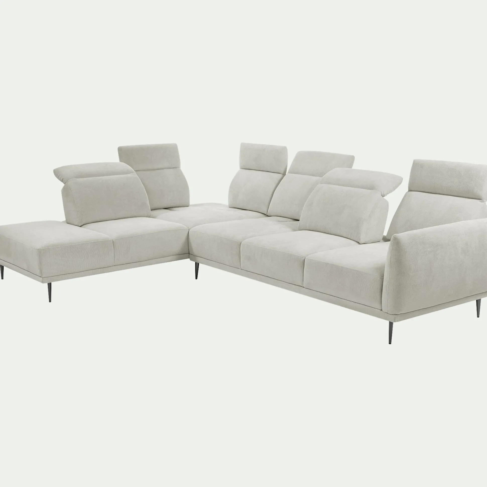 Optez pour ce canapé d’angle gauhe 5 places qui allie un design contemporain à une fonctionnalité ingénieuse. Son revêtement en tissu memphis beige roucas apporte une touche lumineuse et audacieuse à votre salon. Profitez d’un confort sur mesure grâce à son assise profonde et à son système de dossiers qui reculent pour s’adapter à vos envies. Les têtières relevables offrent un soutien optimal pour vos moments de détente devant la télévision ou un bon livre. Ce canapé est une pièce maîtresse qui séduit par sa qualité de fabrication et son allure résolument moderne.