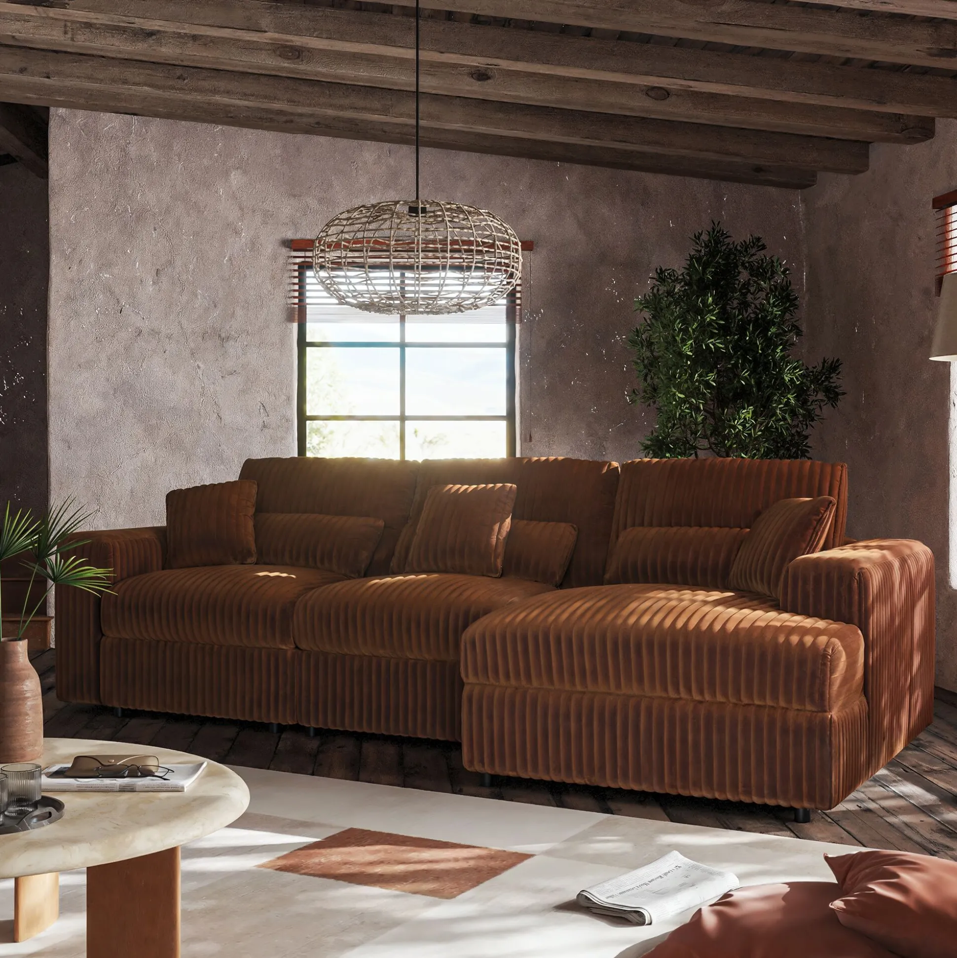 Canapé petit angle droit fixe en tissu côtelé bita – brun rustrel