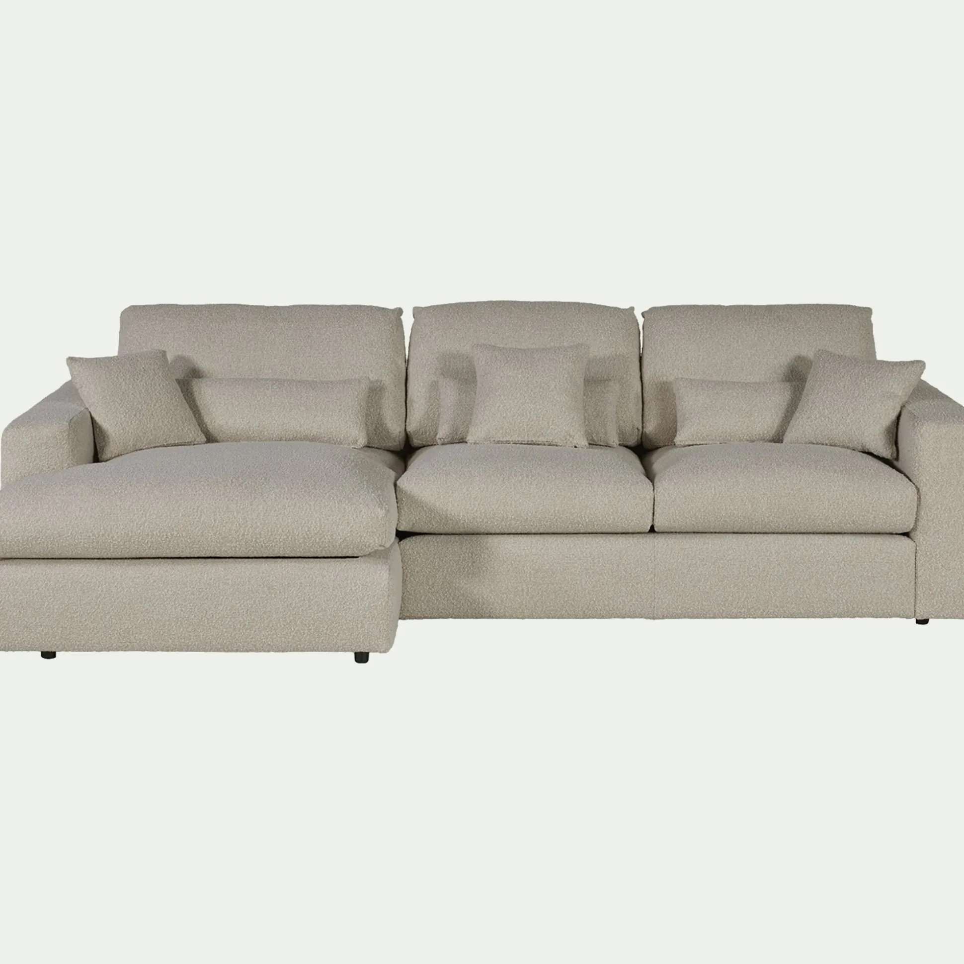 Canapé petit angle gauche fixe en tissu bouclette – blanc écru