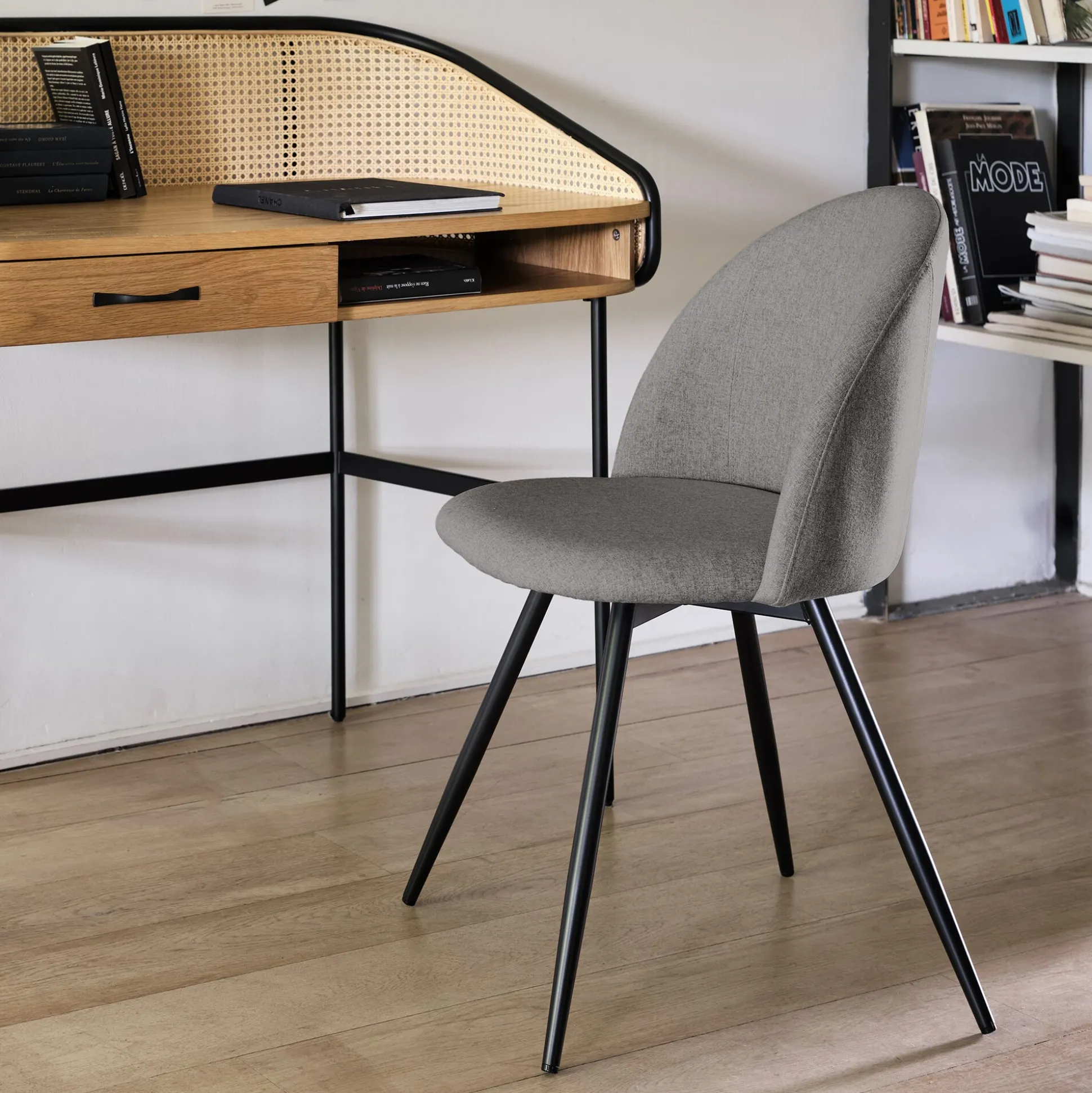 Fiona est une chaise de bureau, parfaite pour être confortablement installé pour travailler tout en sublimant la décoration de la pièce. Cette chaise en tissu gris se compose d’une assise et d’un dossier moelleux en mousse. Ces éléments surmontent un piètement en métal noir, graphique et tendance. Cette chaise de bureau grise vient sublimer votre espace de travail. Confortable, elle favorise la concentration, mais aussi l’harmonie de la pièce.