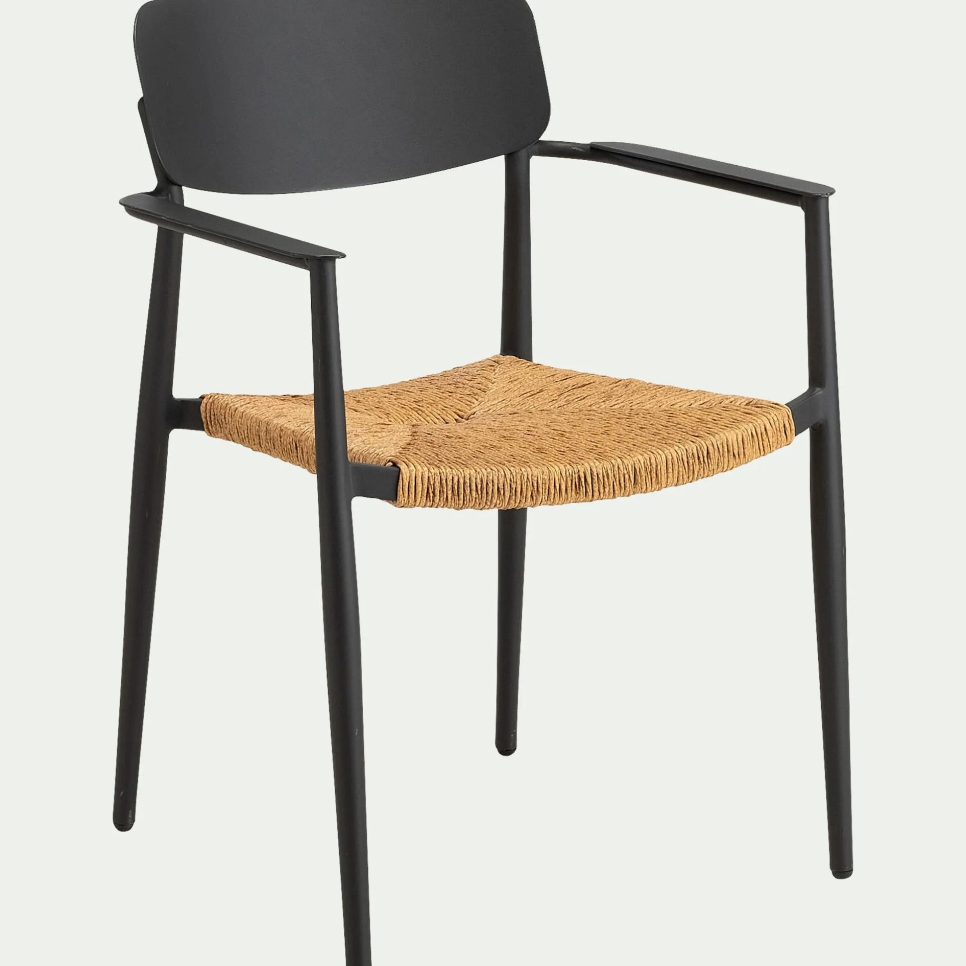Pieds fuselés et siège en résine tressée.