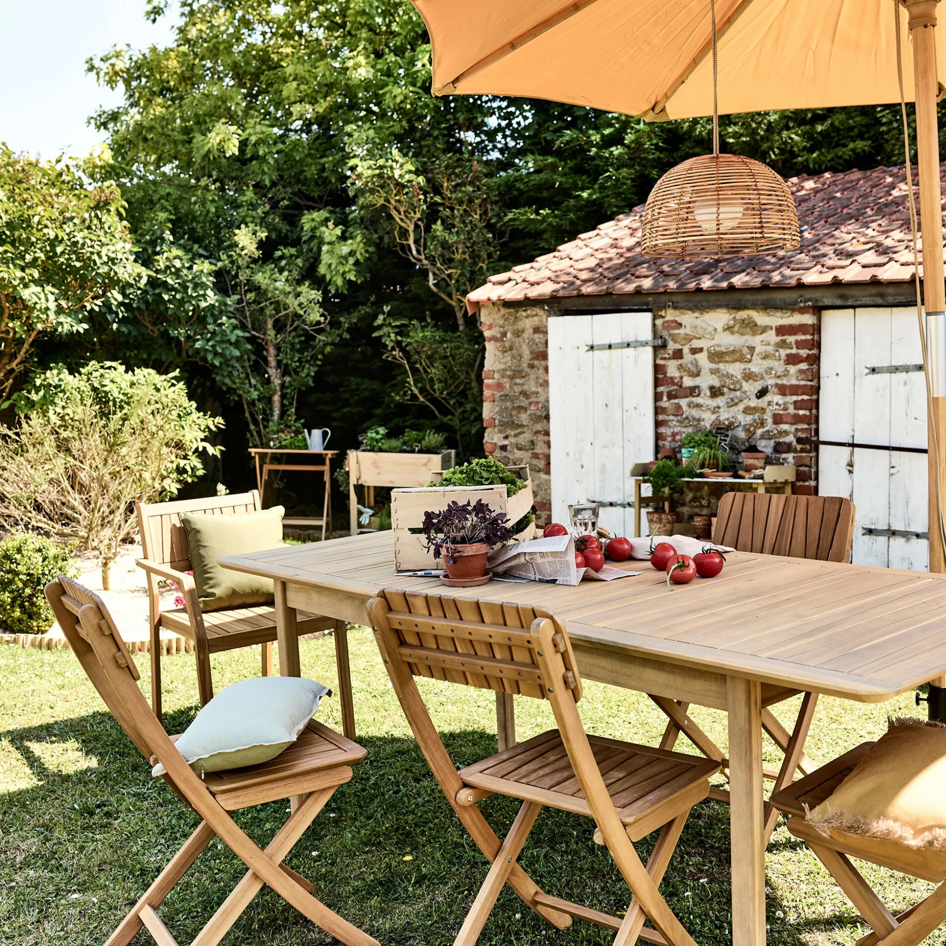 Imaginée et créée par nos designers, laissez-vous séduire par cette jolie chaise pliante qui sera très utile pour aménager des petits balcons, jardins ou terrasses. Vous allez apprécier de pouvoir la ranger avec facilité. Cette chaise à la matière naturelle, en acacia finition huilée apportera une touche chaleureuse à votre espace extérieur. Pour créer un bel ensemble, mariez-la à la table de la même collection et obtenez un coin repas de charme pour d’agréables moments de partage avec vos proches.