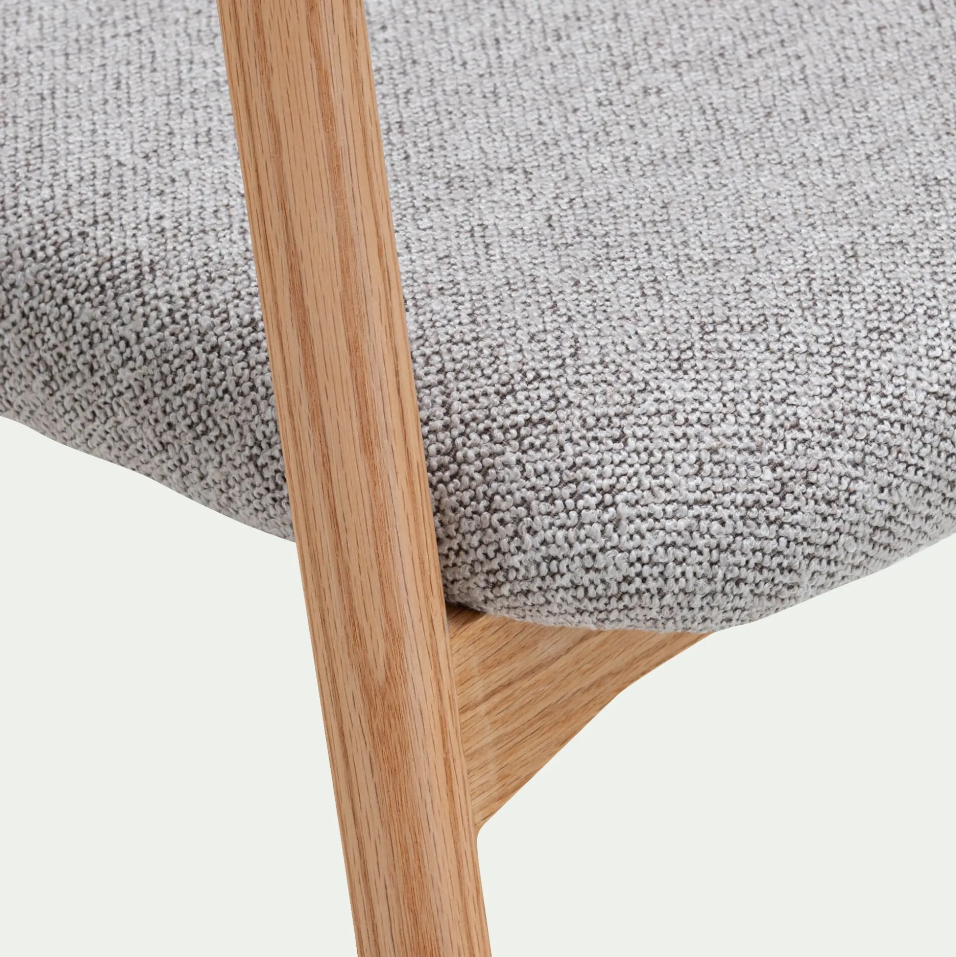 Alliance parfaite entre confort et design, cette chaise de repas séduit par sa silhouette aérienne et son élégance naturelle. Sa structure en bois clair certifié FSC® met en valeur des lignes fines et épurées, tout en assurant solidité et durabilité. L’assise, le dossier et les accoudoirs sont entièrement habillés de tissu gris, pour un accueil tout en douceur lors des repas. Avec son allure légère et son confort enveloppant, cette chaise trouvera sa place aussi bien autour d’une grande table familiale que dans une salle à manger plus contemporaine.