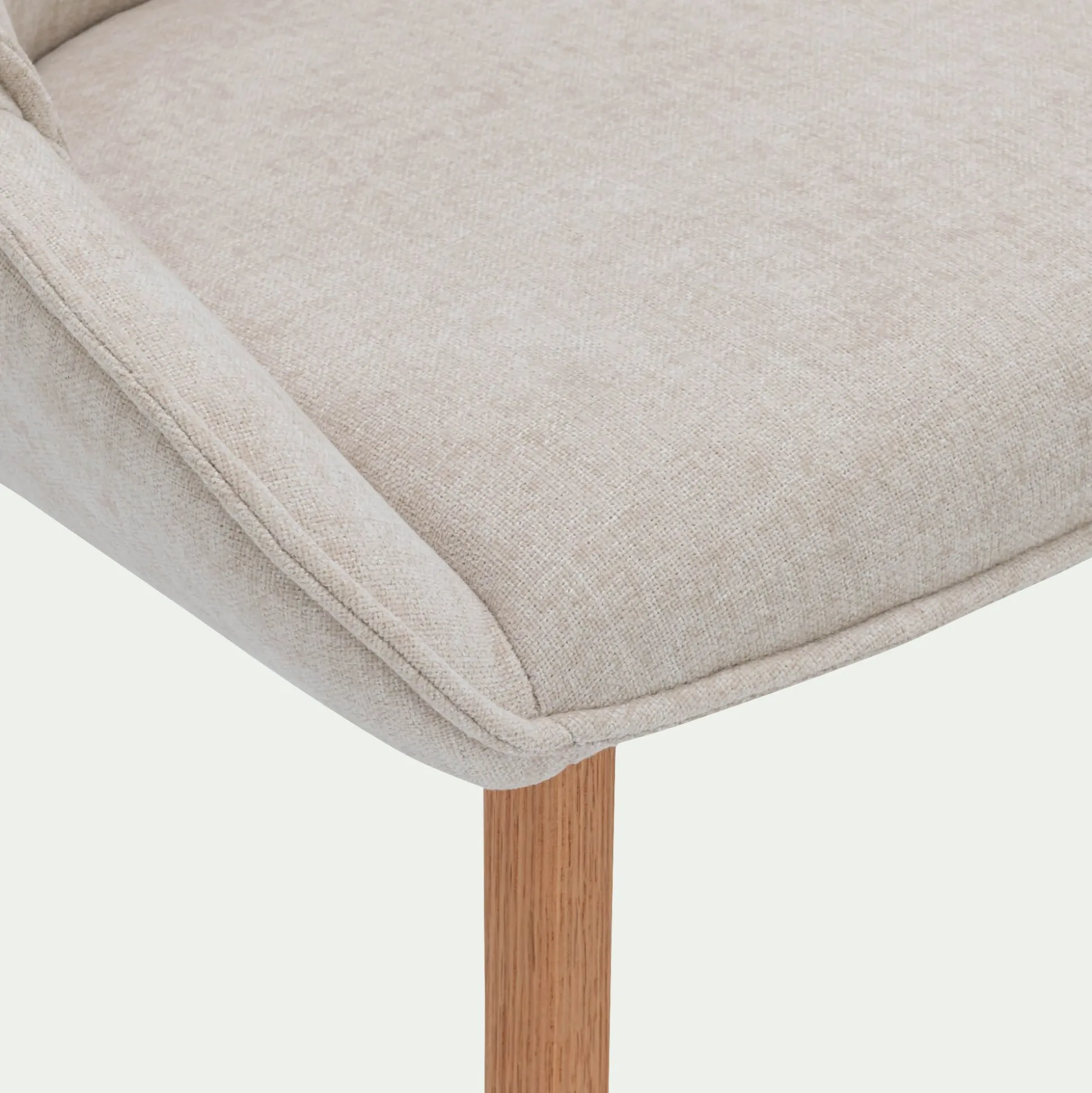 Avec son design cocooning, la chaise Jaume transforme chaque repas en moment de détente. Son piètement en bois certifié FSC apporte une touche naturelle et responsable, tandis que son assise et son dossier généreusement rembourrés, habillés d’un tissu blanc écru, évoquent douceur et sérénité. Une chaise de repas aussi confortable qu’élégante, qui s’intègre avec raffinement dans une salle à manger chaleureuse.