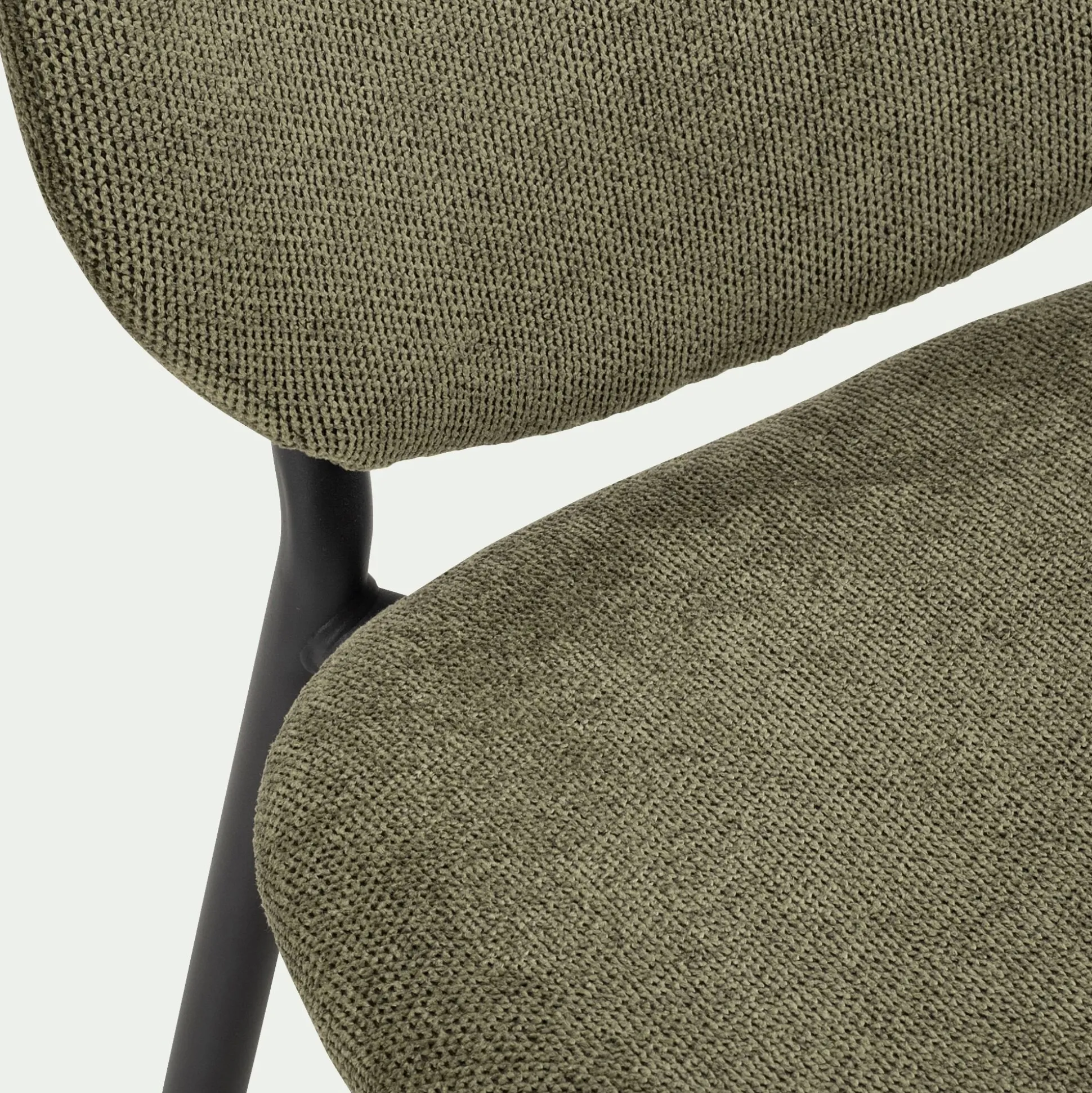 Découvrez la chaise MIA, alliant design contemporain et confort pratique. Son assise en tissu vert, moelleuse grâce à sa mousse 24kg/m3, vous invite à prolonger le plaisir autour de la table. Le piétement en métal noir apporte une touche d’élégance industrielle, tandis que la structure en MDF et eucalyptus certifié FSC garantit sa robustesse et sa durabilité. Facile à vivre et à intégrer, elle s’associe parfaitement à vos tables pour des moments conviviaux. Cette chaise sans accoudoir, avec ses dimensions généreuses (L50 x larg58 x H87 cm), est pensée pour votre bien-être.
