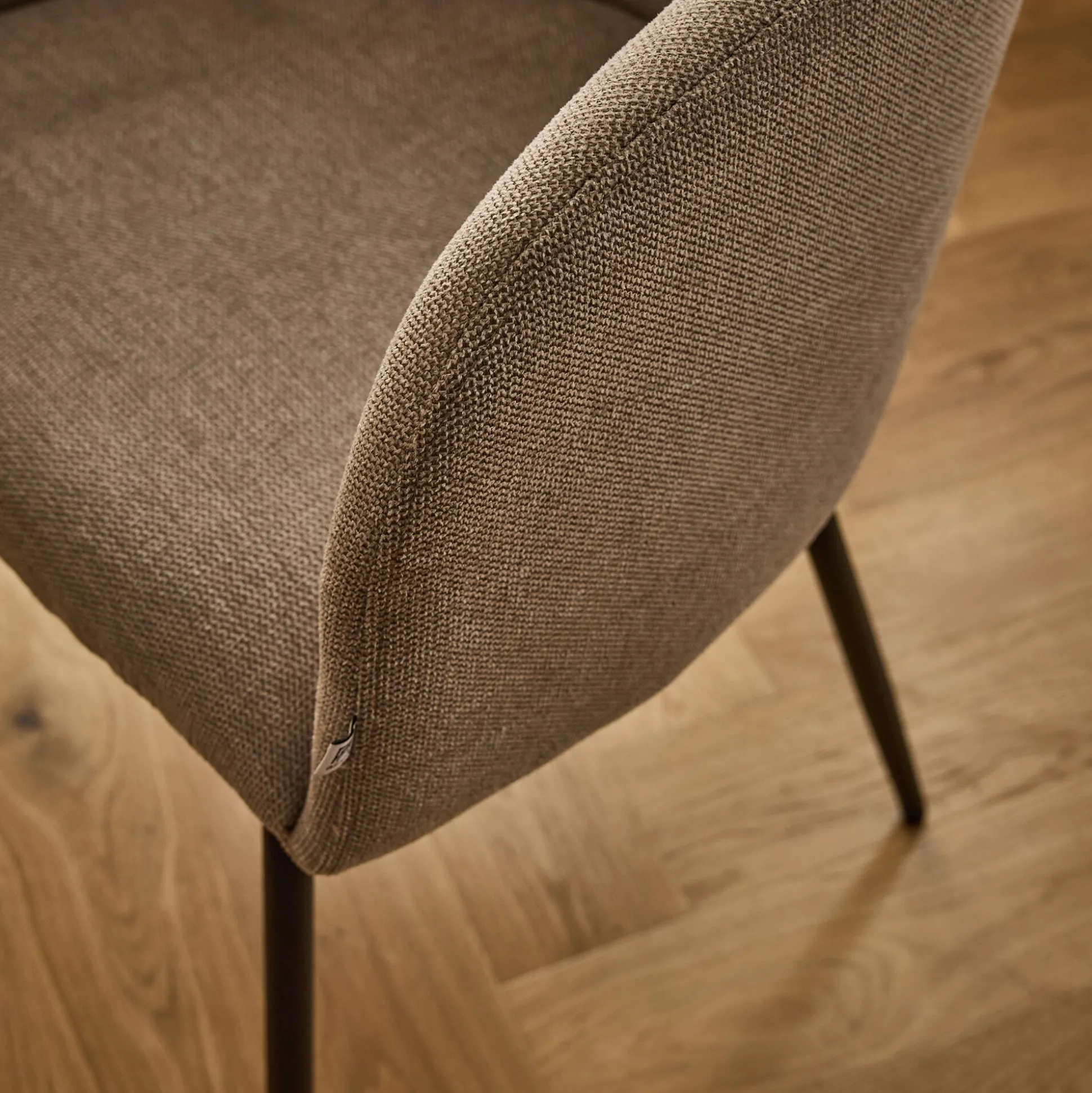 La chaise de repas Peille brouille les frontières entre chaise et fauteuil. Habillée d’un tissu beige alpilles, elle affiche un ton naturel et apaisant, rehaussé par un piètement en métal noir au design épuré. Son assise généreuse et son dossier enveloppant, prolongé par deux accoudoirs, invitent à la détente. Une chaise en tissu confortable, pensée pour savourer les repas et les conversations qui s’en suivent.