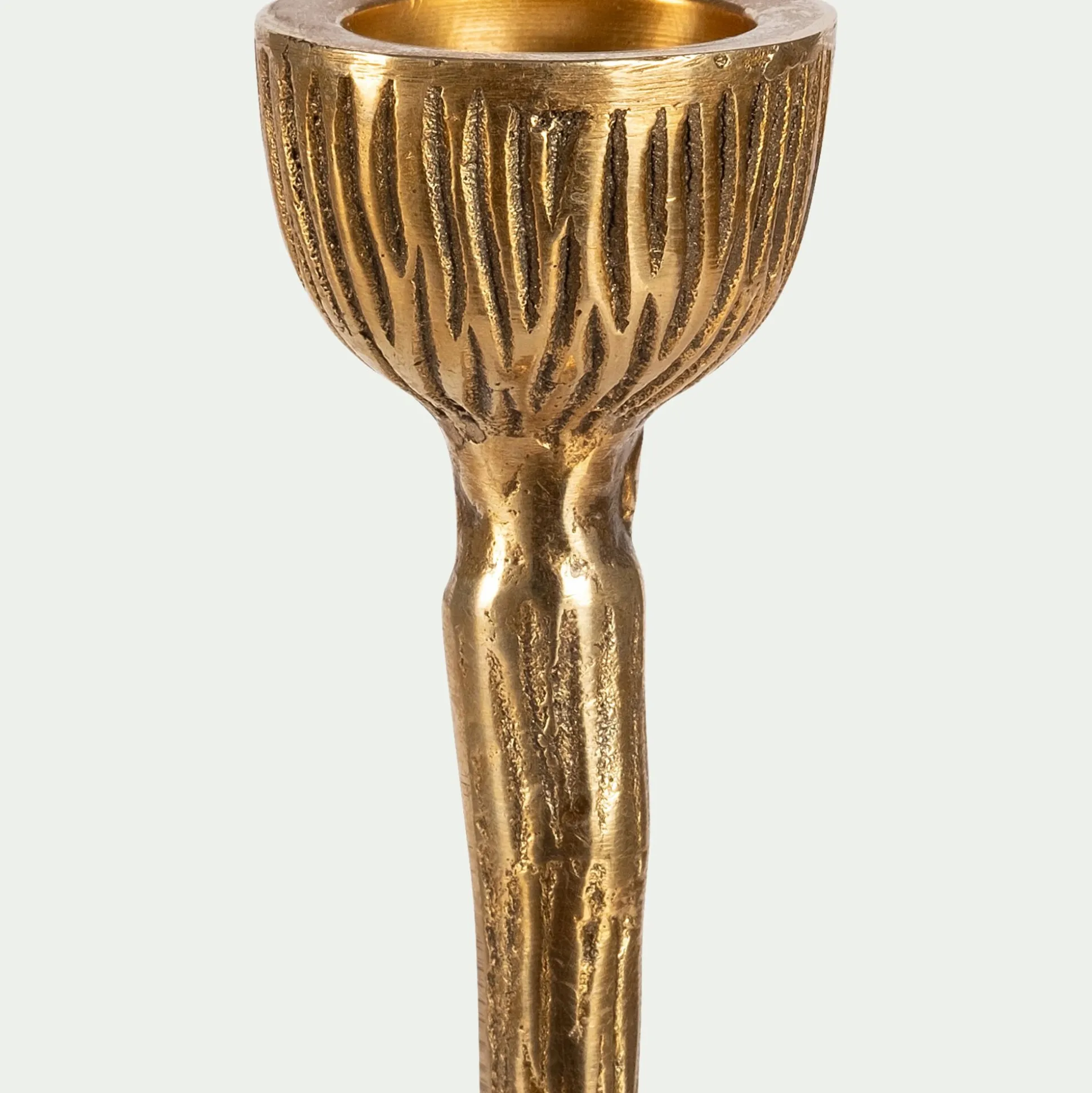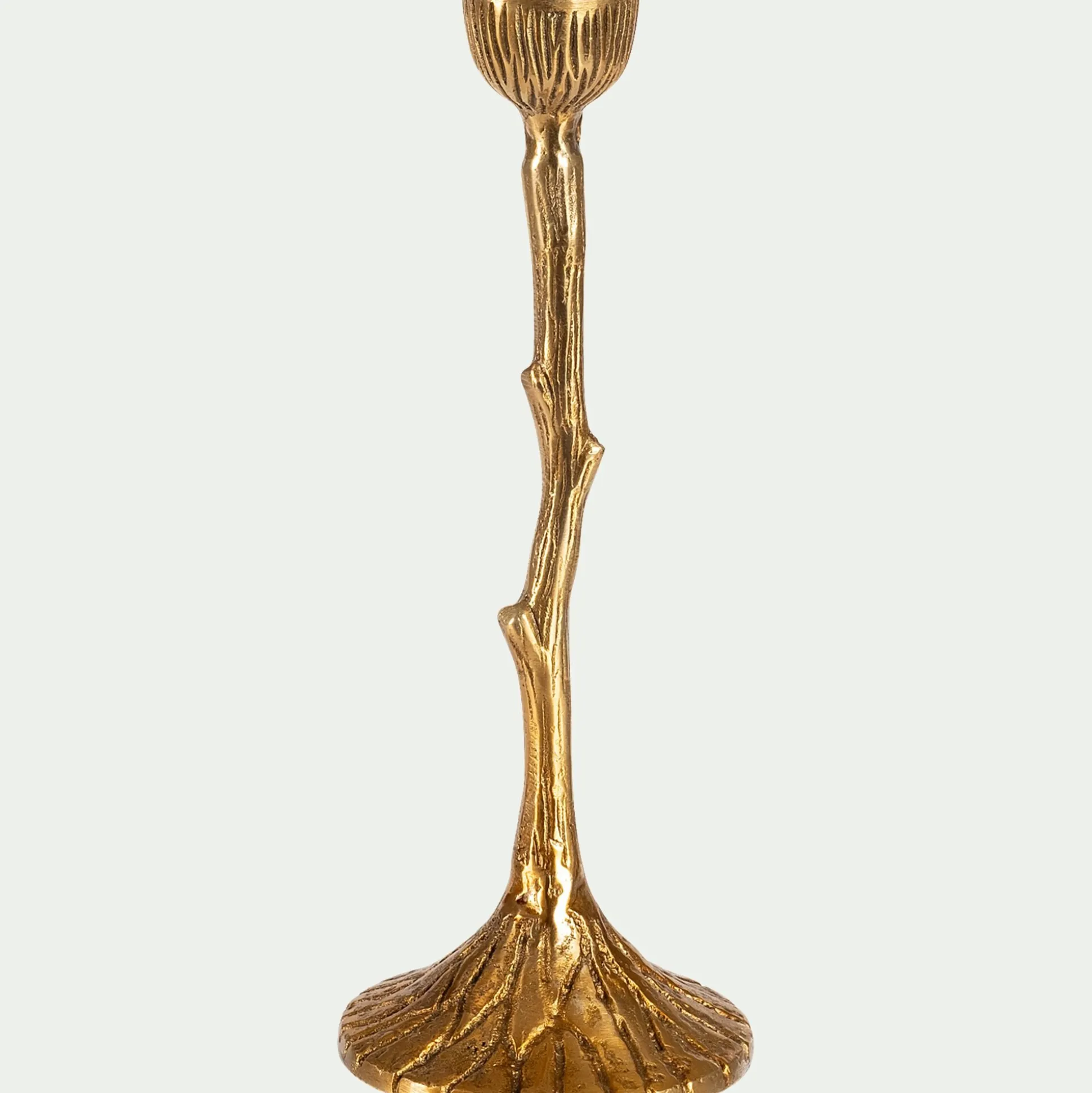 Ajoutez une touche originale à votre décoration avec ce chandelier en laiton sculpté en forme de branche. Pensé pour accueillir une bougie flambeau, il participe à une atmosphère accueillante. Quel que soit l’évènement, ce chandelier doré le rend unique et inoubliable. Sa finition dorée capte la lumière pour projeter des reflets, transformant instantanément votre intérieur.