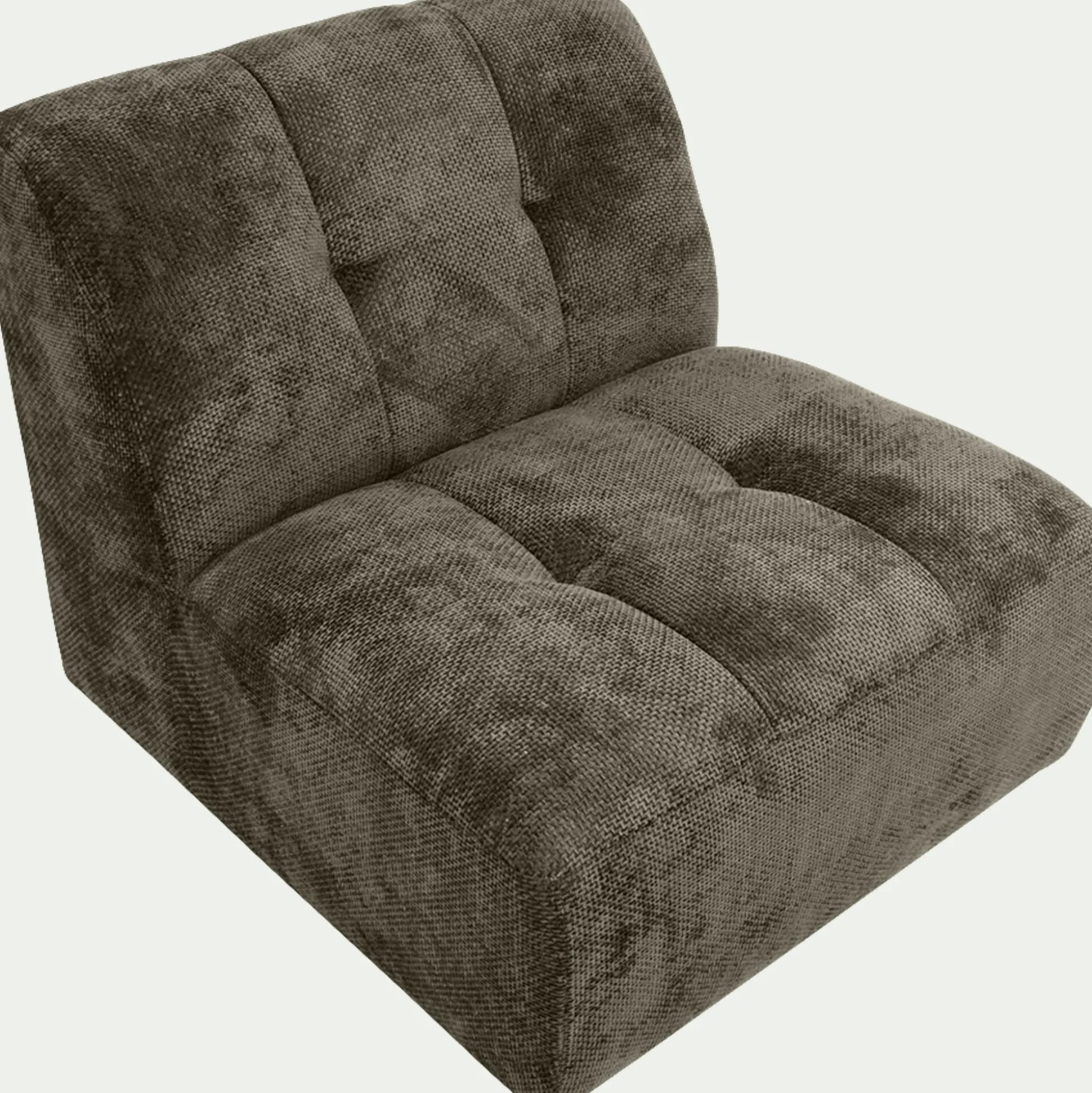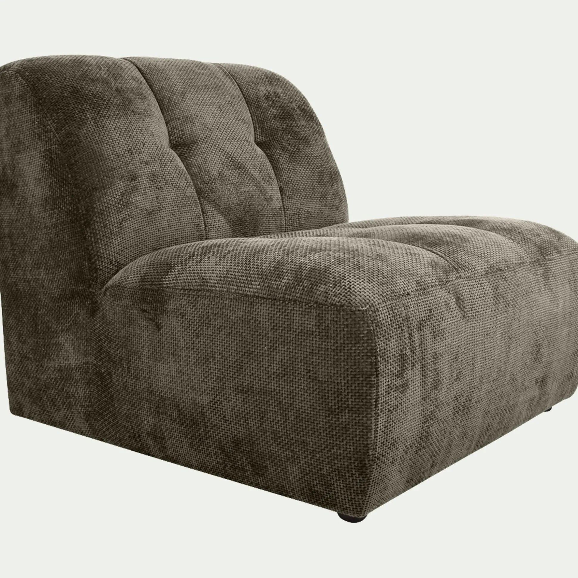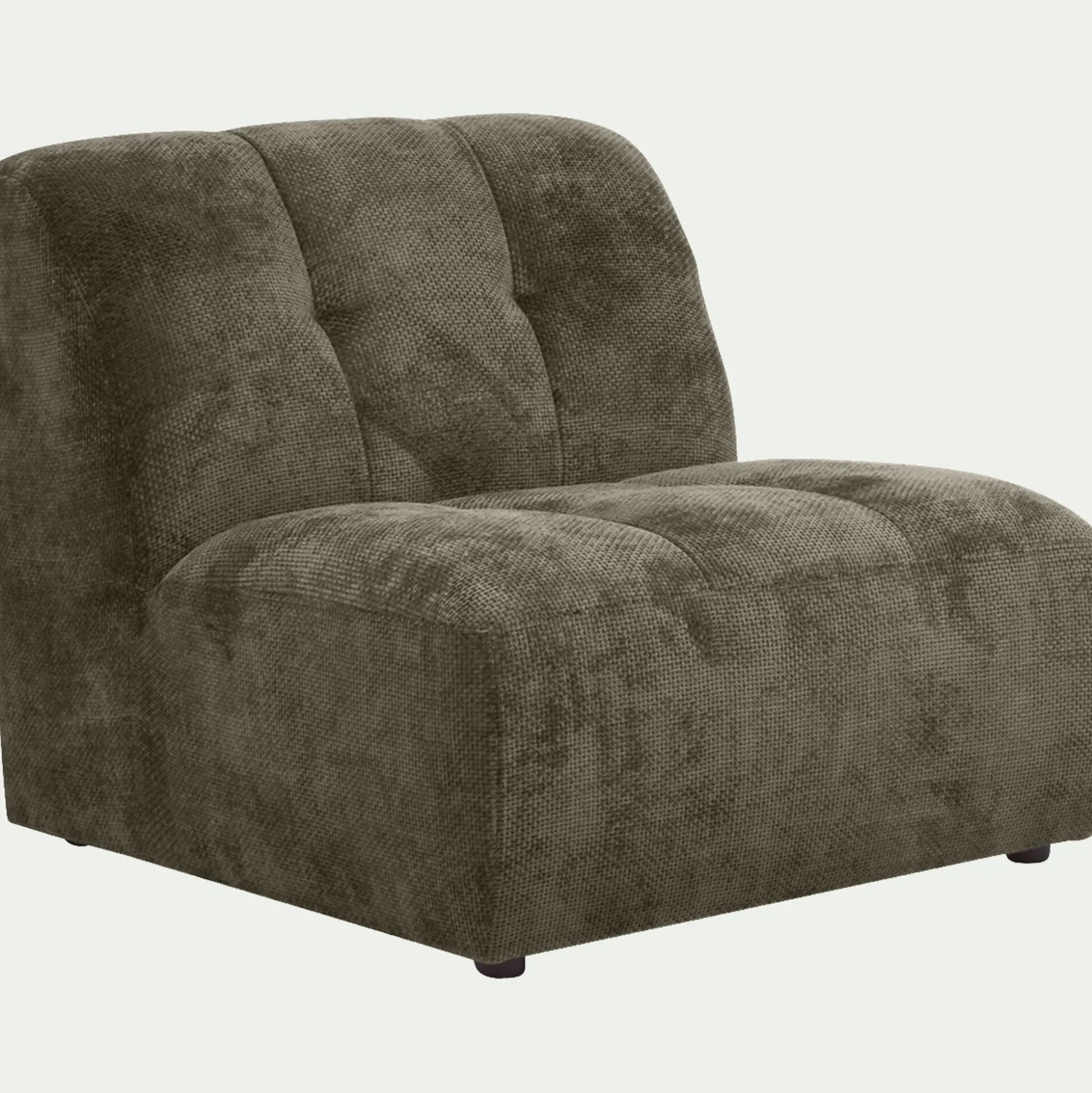 Avec son tissu chunky au maillage généreux, cette petite chauffeuse invite à la détente. Son assise profonde et son dossier moelleux créent un véritable cocon de confort. Son tissu doux et texturé lui donne une forme riche, tandis que des capitons apportent du volume et une touche d’élégance. Utilisée seule comme fauteuil d’appoint ou achetée à plusieurs pour créer un ensemble harmonieux, elle permet de composer un canapé modulable selon les envies. Son coloris vert cèdre, chaleureux et raffiné, s’intègre naturellement dans tous les intérieurs et se marie avec plusieurs gammes de mobilier. Conçue pour durer, cette chauffeuse en tissu vert repose sur une structure en pin massif et un revêtement résistant. Une pièce fabriquée en France, où confort et design se rencontrent.