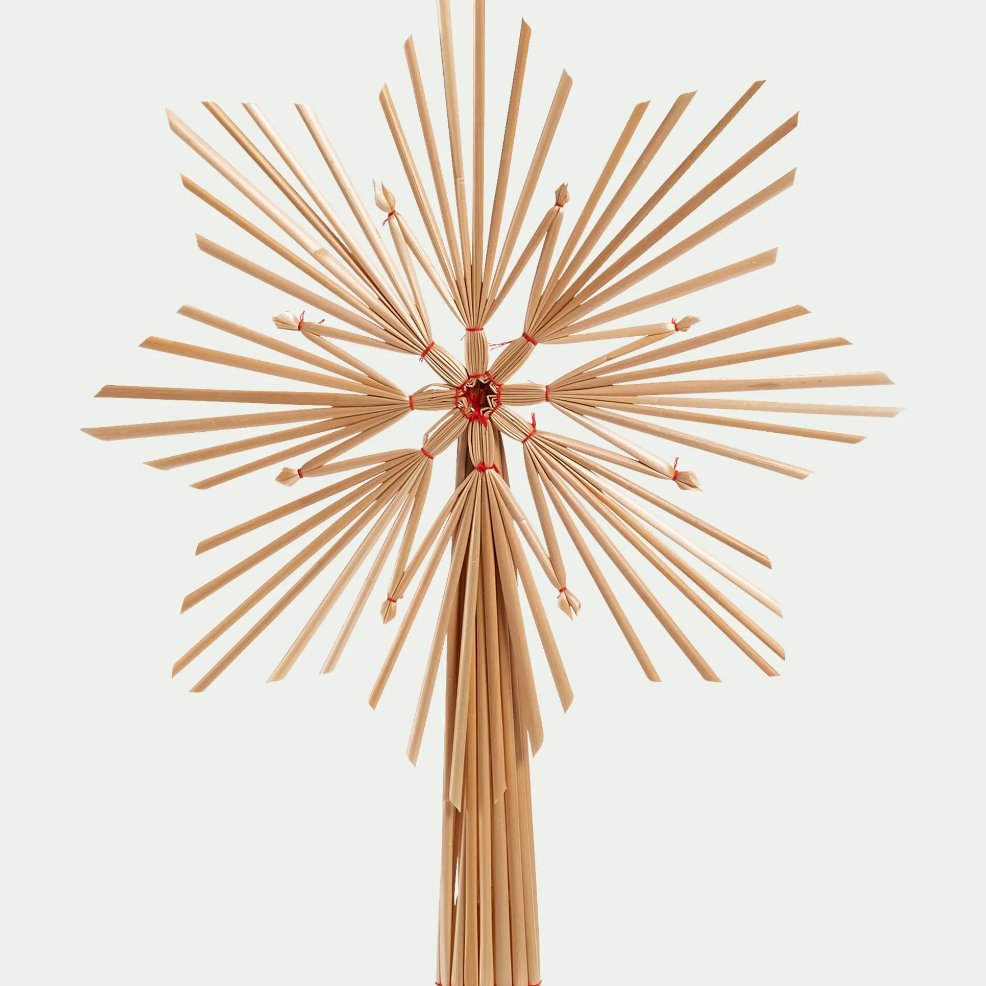 Le cimier Arrigas est l’accessoire parfait pour couronner votre sapin de Noël. Fabriqué en paille, une fibre végétale séchée à la teinte dorée, ce cimier évoque la lumière chaleureuse des fêtes. Habilement travaillé, il prend la forme d’une étoile, symbolisant l’étoile du berger qui éclaire le chemin vers des célébrations joyeuses. Suspendue au sommet de votre arbre, cette étoile en paille apporte une touche de magie et de tradition à votre décor.