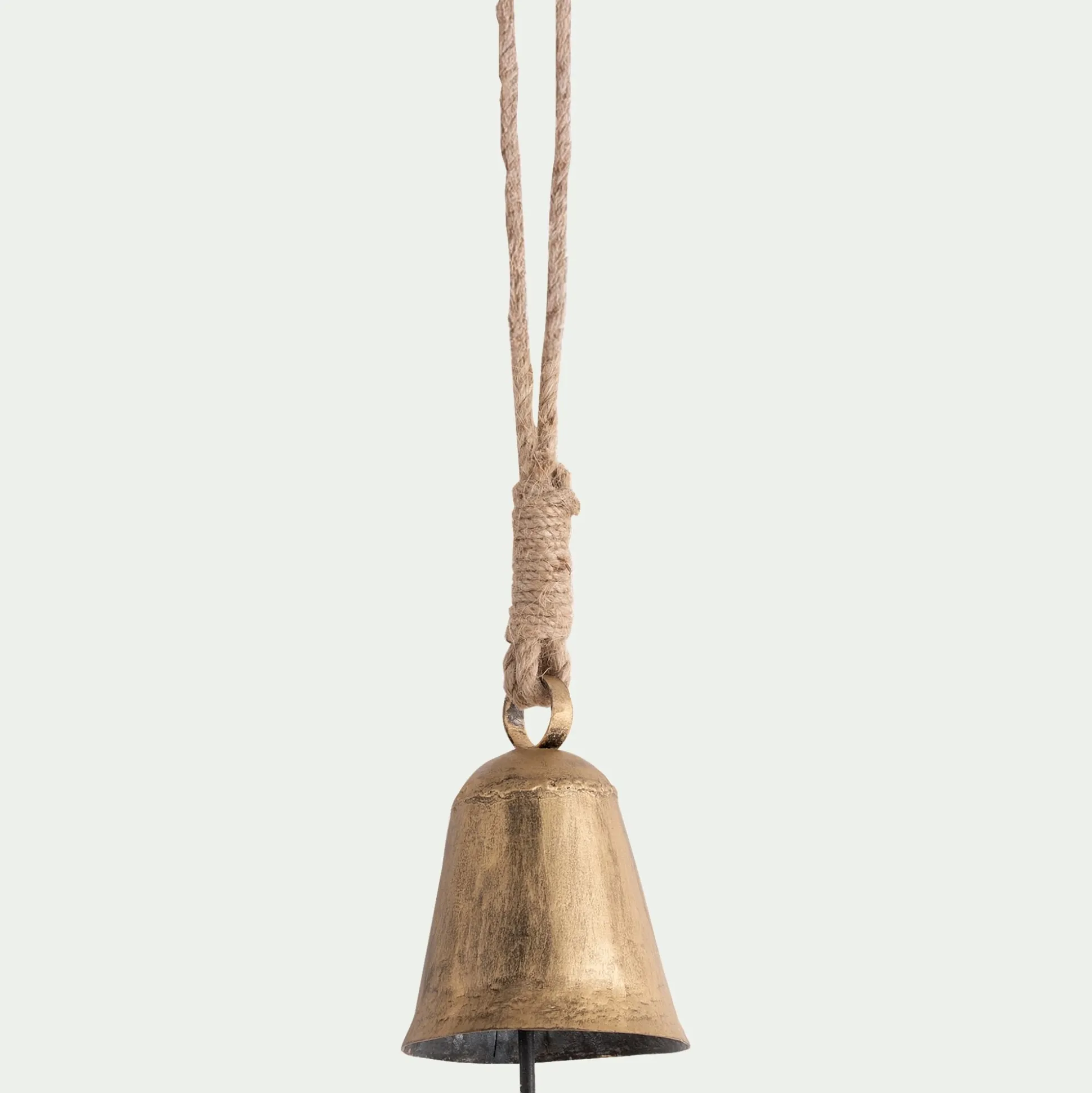 Décoration authentique et rustique, cette cloche dorée s’intègre parfaitement à un esprit festif. En fer doré, elle dispose d’une corde en jute pour être suspendue au sapin, à une porte ou à un mur. Cette suspension de Noël tinte délicatement au gré du vent, participant à une ambiance complète, aussi bien visuelle que sonore.