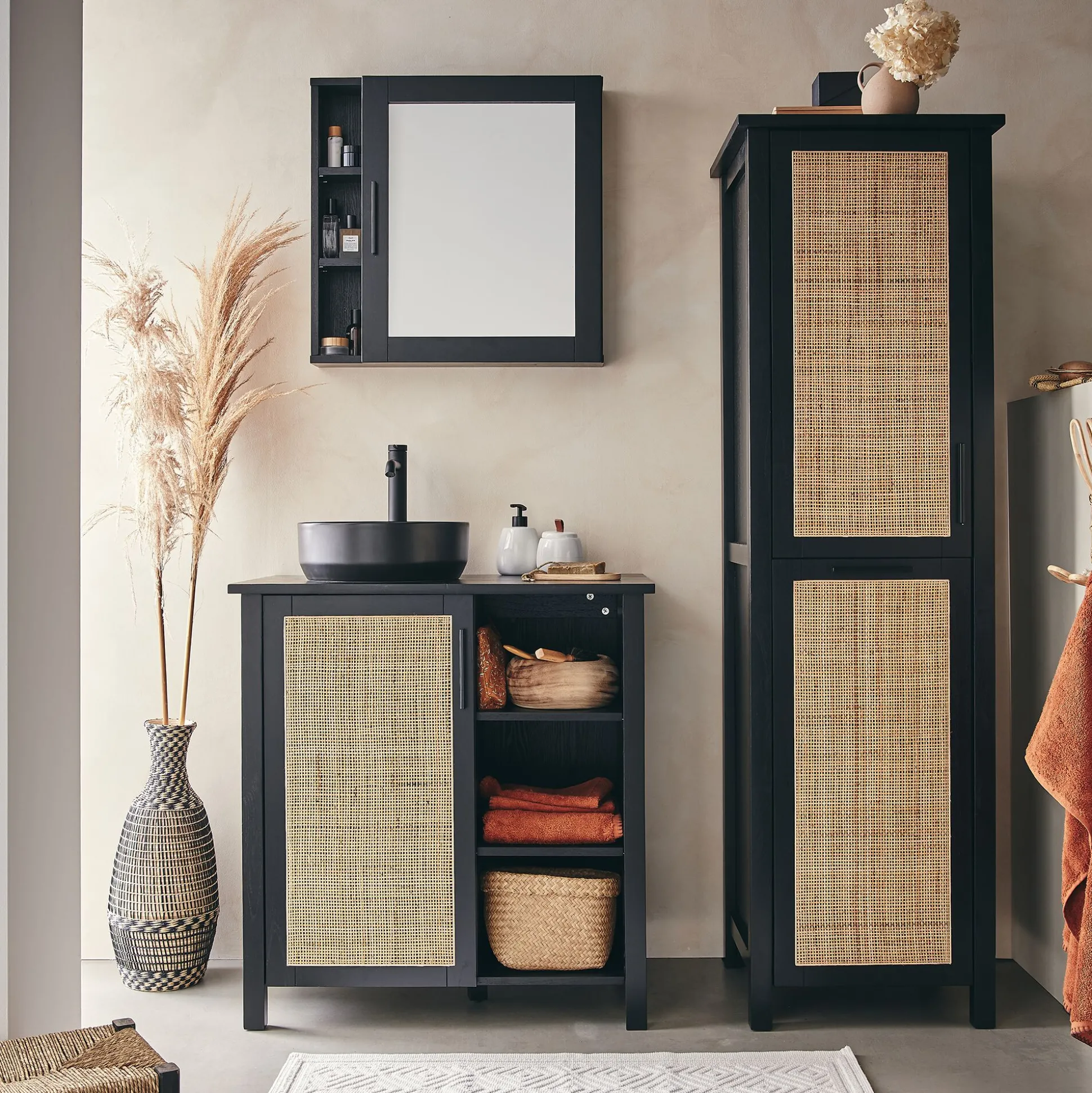 Colonne de salle de bain en bois de cèdre et cannage – H171cm