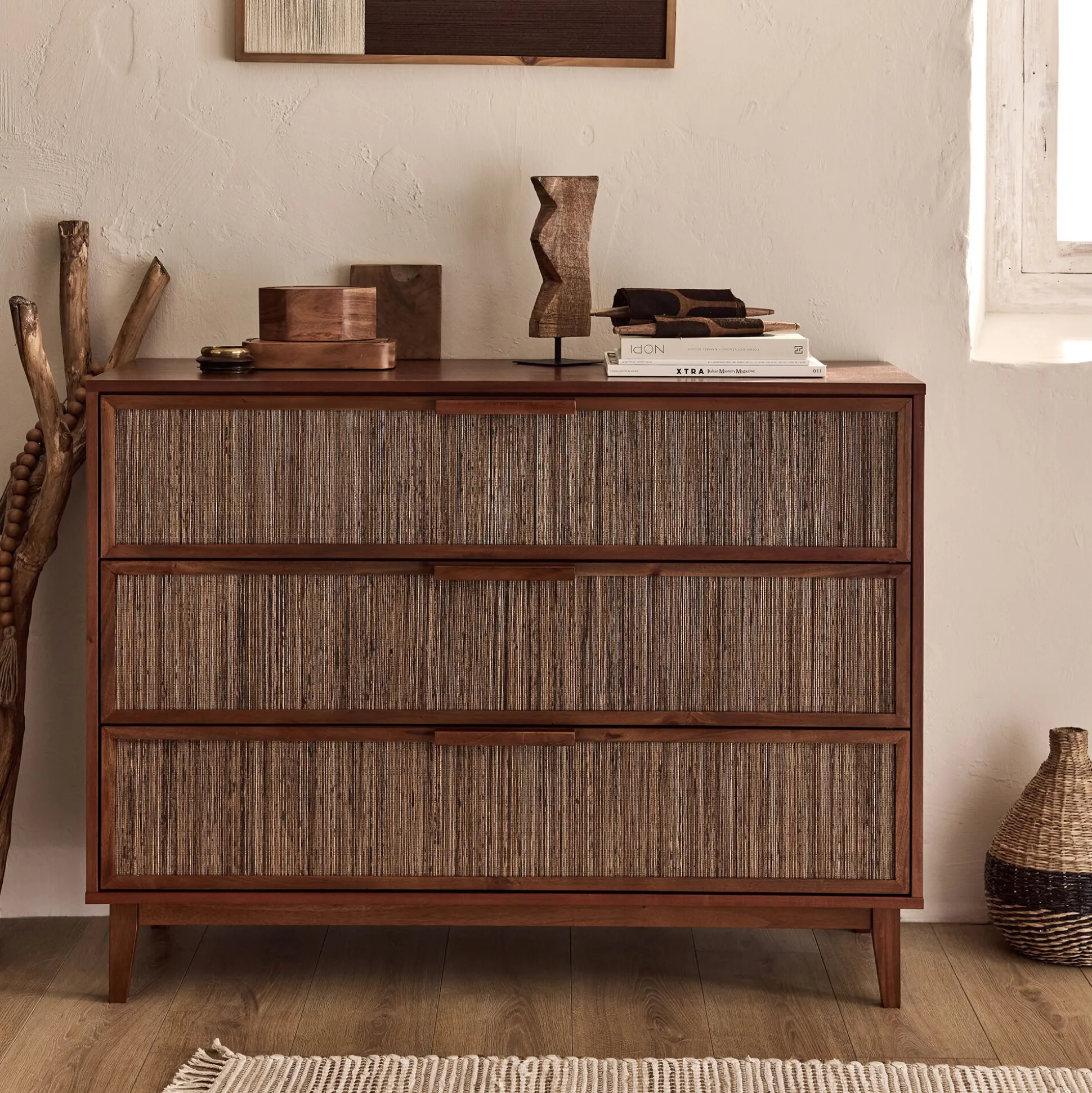 Cette grande commode en acajou est la parfaite alliance entre pratique et esthétique. Elle est composée de trois tiroirs pour organiser vos vêtements ou votre linge de lit afin que votre chambre soit toujours rangée. En bois foncé, elle donne un côté distingué à votre pièce. Sa couleur se marie avec tout types de décorations pour un intérieur à l’harmonie idéale. Choisissez les meubles Cocoon pour une chambre chaleureuse.