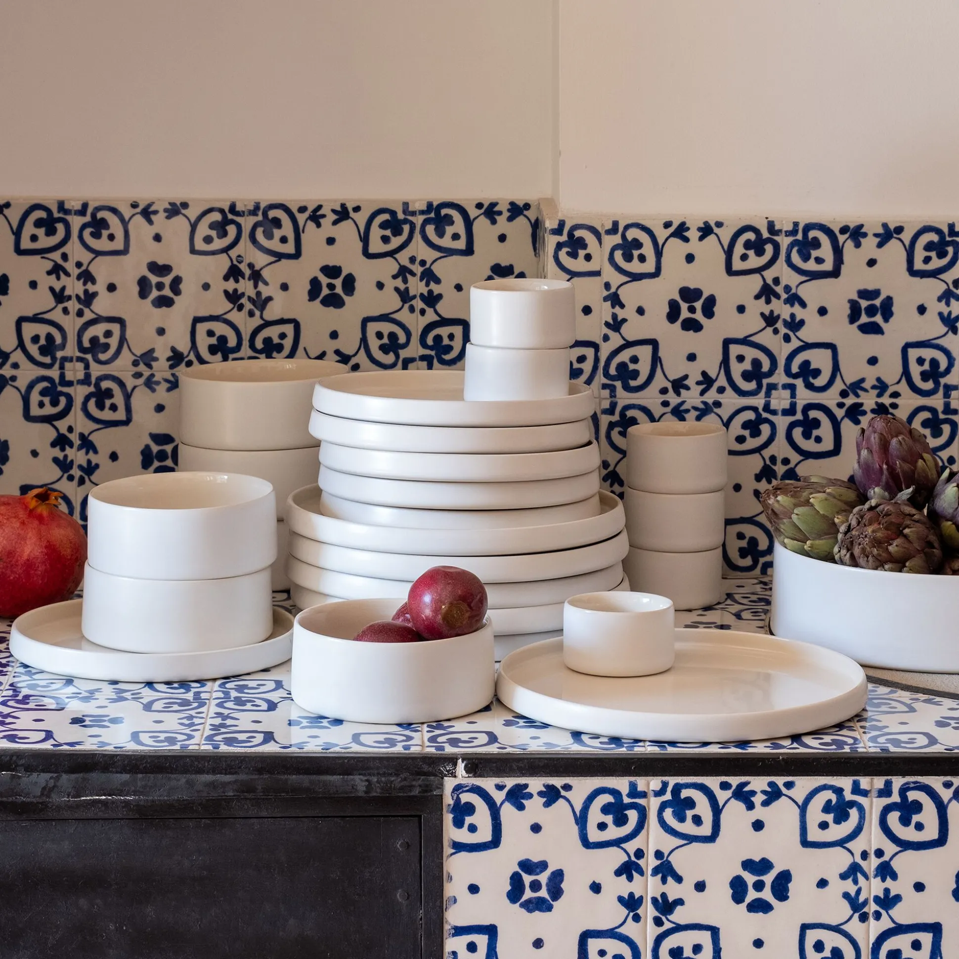 Ronde et haute, la coupelle Diogo arbore un design structuré, à la fois contemporain et minimaliste. Fabriquée en grès, elle présente un bel émail brillant qui met en valeur son coloris blanc. De l’apéritif au dessert, cette coupelle en grès vous accompagne tout au long du repas pour servir vos recettes. Pratique, elle est solide et se lave facilement en machine : un compagnon de cuisine aussi joli que fonctionnel.