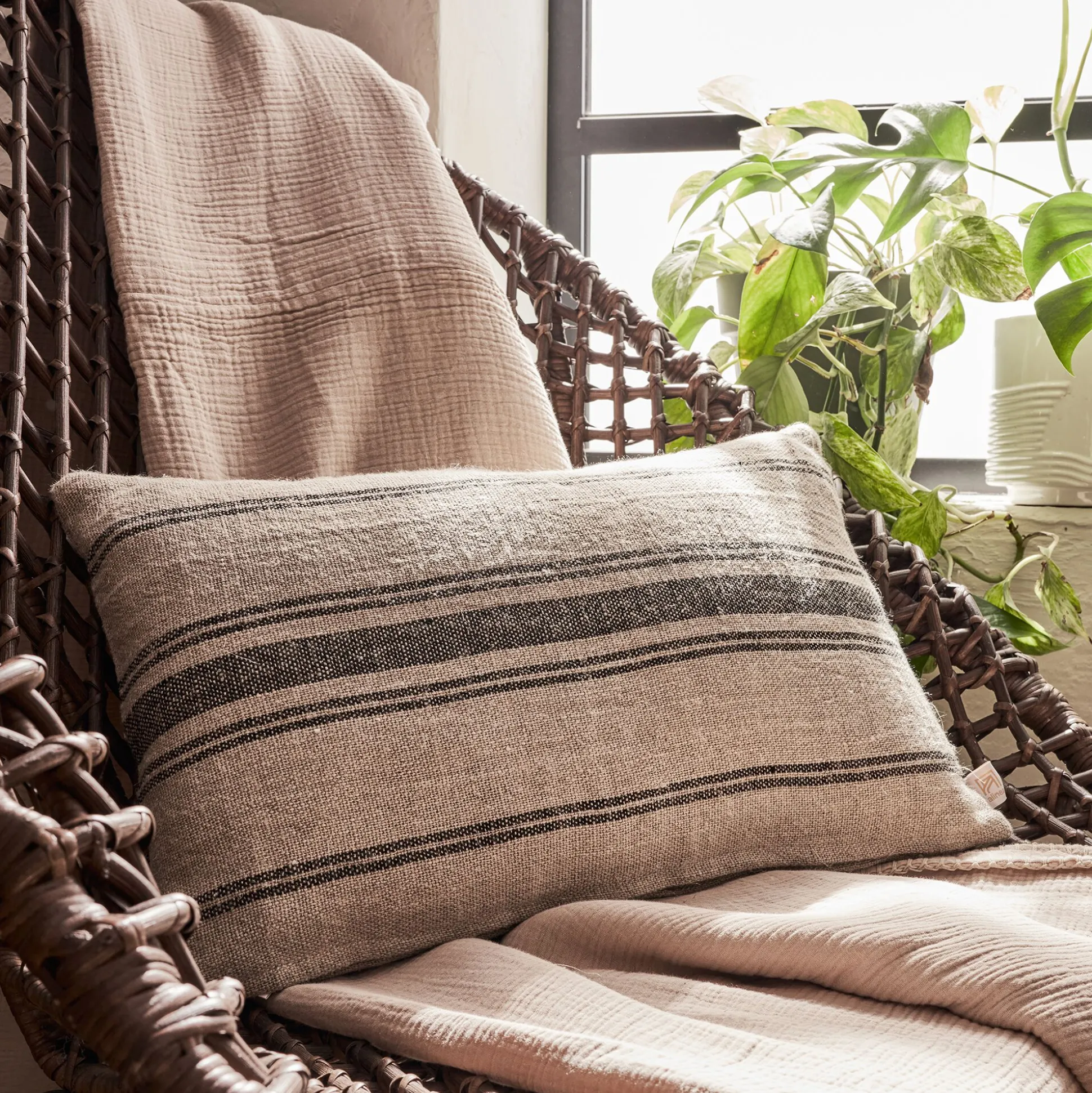 Le coussin Oasis est un coussin en lin qui met à l’honneur le côté naturel. Sa couleur, non teintée, met en valeur cette fibre naturelle. Quelques rayures irrégulières donnent un style oriental à ce coussin qui porte si bien son nom. Oasis de nature au coeur de la maison, ce coussin se marie avec tous les types de décoration.