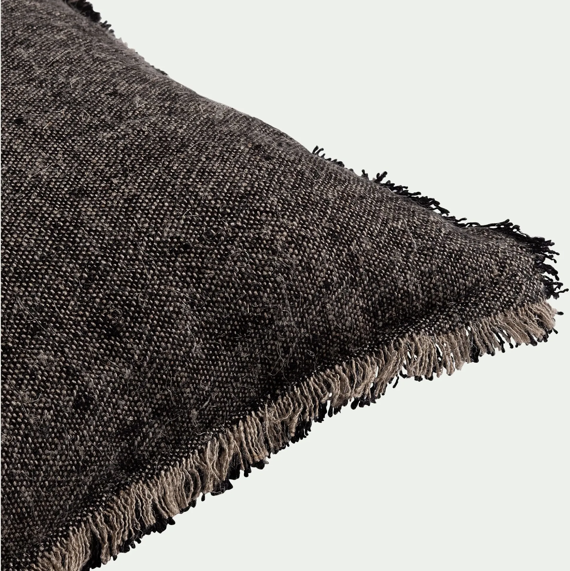 Noir et beige s’entremêlent dans un tissage en chambray soyeux. Les fils dansent ensemble et forment de gros grains sur cette étoffe épaisse. Le chambray offre une teinte faussement unie, comme vieillie, tannée par le soleil. Tissée en lin, la housse de coussin diffuse un caractère estival. Son toucher délicat rappelle les beaux jours et invite au repos. Sa finition passepoil présente de courtes franges, détail fantaisiste et aérien adoucissant ce coussin noir. Déhoussable, son garnissage en polyester s’ôte facilement pour procéder au lavage en machine de la housse. Un coussin déco inspiré de la palette sombre et sablée des paysages égyptiens.