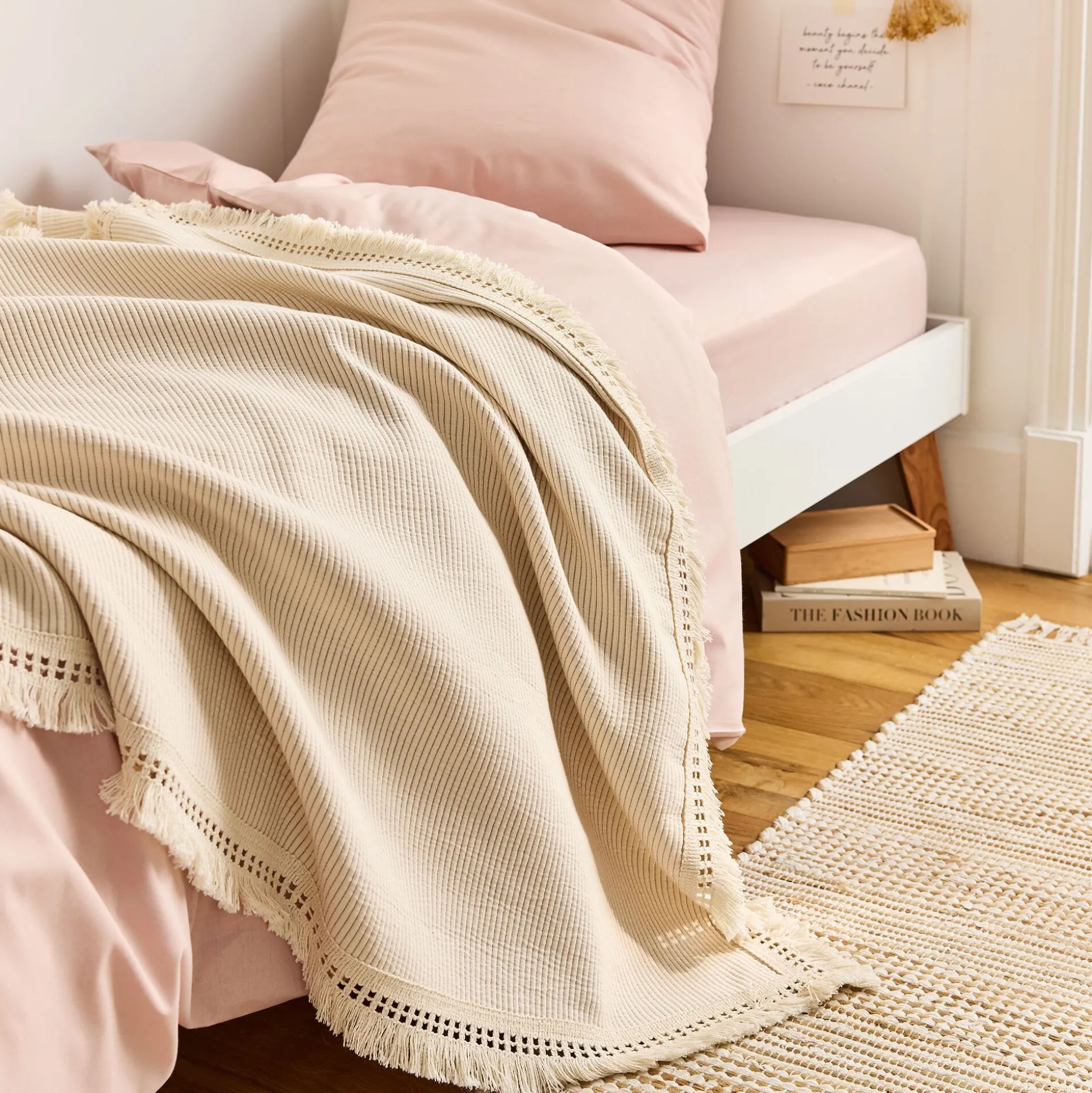 Couvre-lit en coton 130x170cm point ajouré – blanc écru