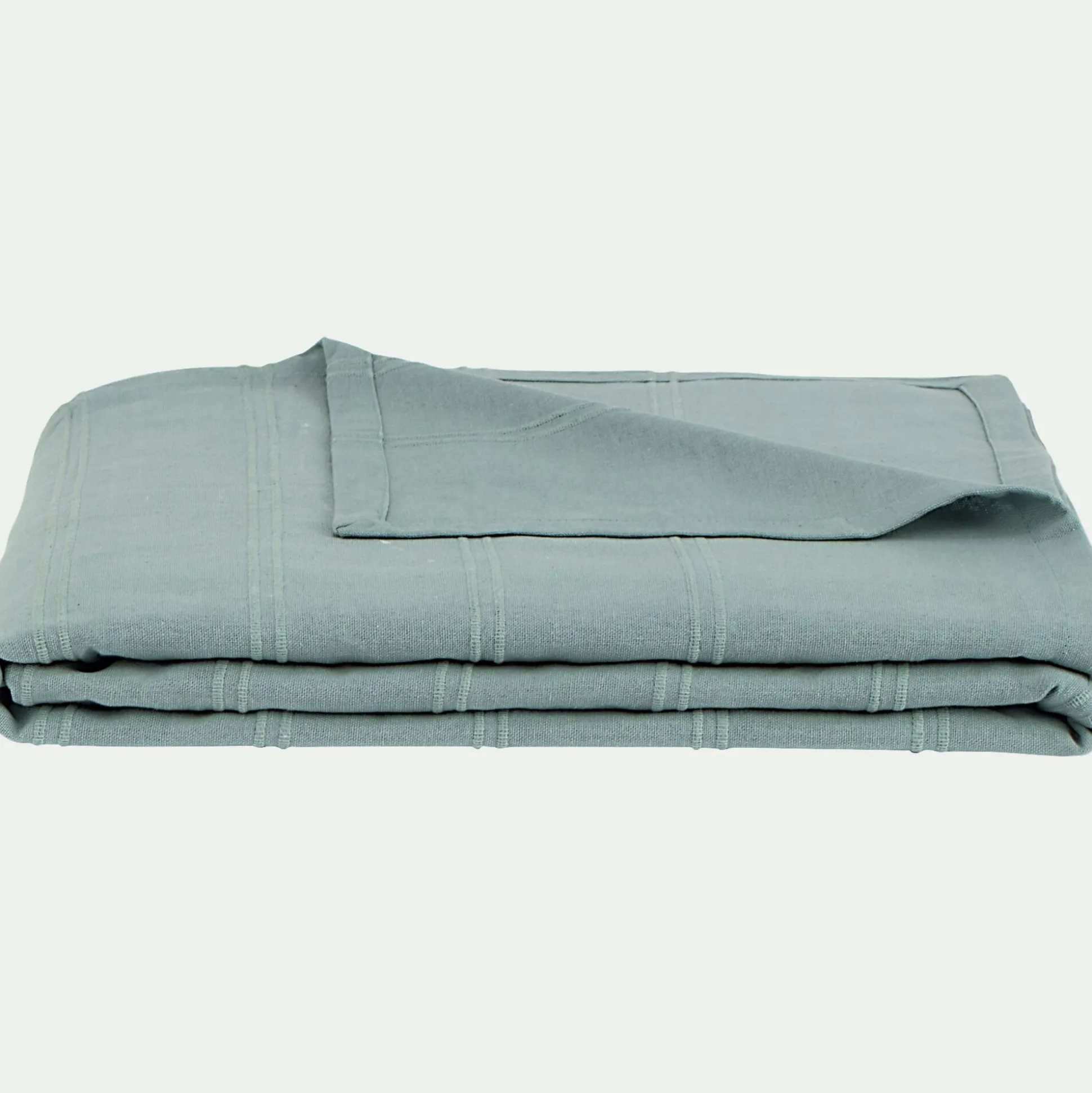 Ce couvre-lit uni arbore un coloris bleu, reconnu en chromathérapie pour favoriser le sommeil. Ainsi, ce plaid bleu trouve parfaitement sa place dans la chambre à coucher. De 180×230 cm, ce couvre-lit convient pour un lit Queen size de 160×200 cm pour un rendu net. Ce couvre-lit en coton est simple, léger, doux et facile d’entretien. Il sublime la chambre en y faisant entrer le ciel et la mer, et réchauffe les nuits les plus fraiches pour un plus grand confort. Un allié de choix pour des nuits paisibles et une chambre agréable à vivre.