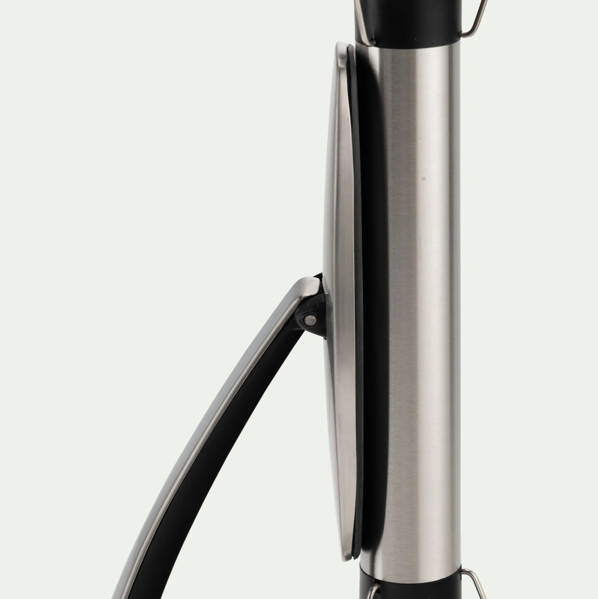 Le dérouleur pour essuie-tout se rendra vite indispensable dans votre cuisine ou à table grâce à sa grande praticité. Son bras de tension maintient fermement l’essuie-tout afin qu’il ne se déroule pas, et que vous puissiez donc prendre une feuille de papier absorbant d’une seule main. Pratique, quand on cuisine et que l’on a les mains sales ou encombrées. La conception en acier inoxydable rend ce porte essuie-tout suffisamment lourd et stable, lui garantissant ainsi un équilibre parfait, même en extérieur. Sa base antidérapante ne craint pas les rayures, et en fait un accessoire durable. Le bouton situé sur le dessus, permet de porter le dérouleur de la cuisine à la table, sans salir les feuilles de papier.
