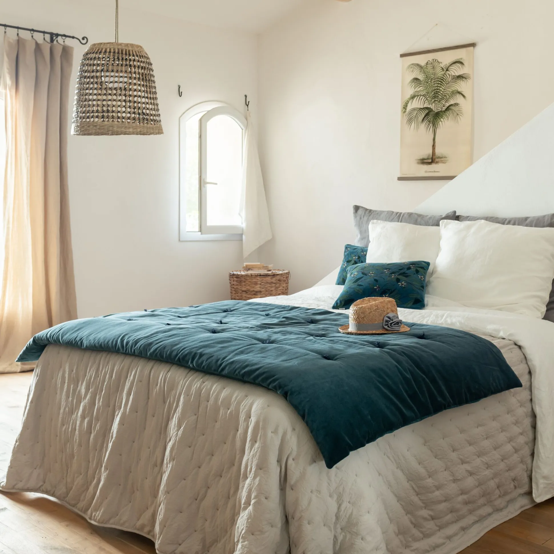L’édredon Eden, d’un beau bleu profond, sera la pièce maitresse pour vous créer un petit coin de paradis. Moelleux et lourd, c’est une véritable invitation à la paresse. En coton effet velours et avec son côté matelassé, cet édredon est un bel objet de décoration et un nid douillet où se réfugier lors des soirées d’hiver. Il apporte du cachet à un lit et un caractère affirmé à toute la pièce.