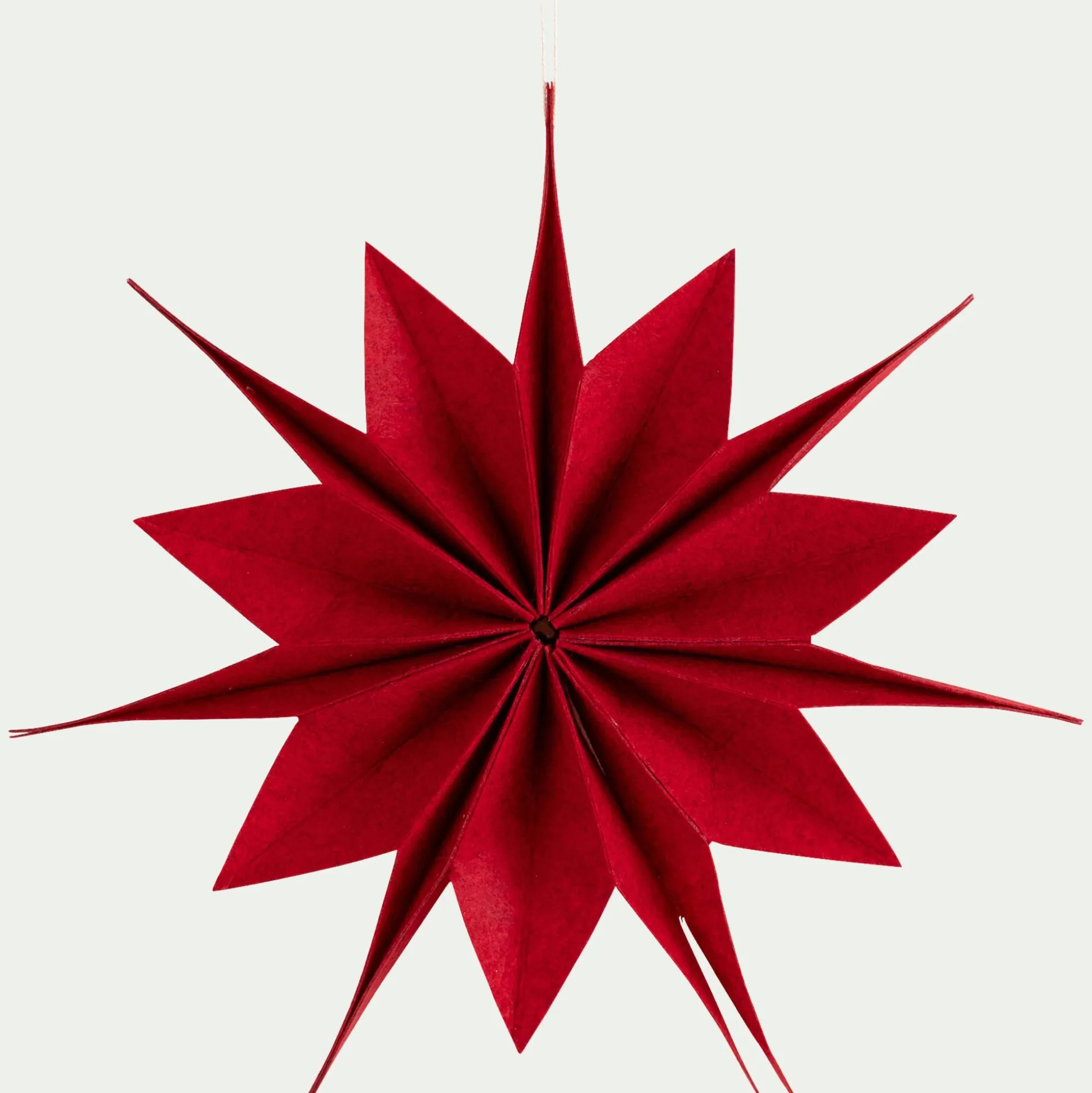 Insufflez une touche élégante à la décoration de Noël grâce à l’étoile Klar : une pièce forte, aussi simple qu’envoûtante, idéale pour célébrer les fêtes avec douceur. À suspendre dans le sapin, mais aussi à une fenêtre ou un mur, cette étoile rouge en feutrine séduit par son allure poétique et graphique. De 40cm de diamètre, cette déco s’inspire de l’origami et mélange cet art japonais aux codes traditionnels de Noël.