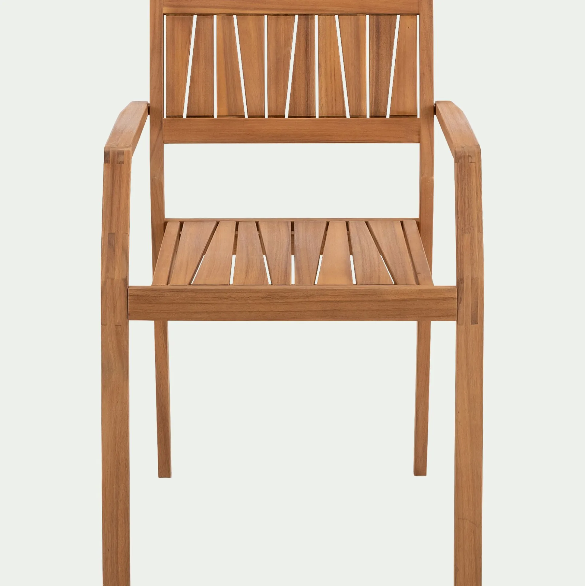 Laissez-vous séduire par ce beau fauteuil en acacia avec son design authentique qui se distingue grâce à ses lattes. Ce fauteuil en bois est une belle pièce pour compléter votre salon de jardin. En effet, créez un agréable coin de détente cosy en l’associant avec un canapé ainsi qu’une table basse de la même gamme. Ce fauteuil de jardin vous offre un réel confort d’assise pour que vous puissiez profiter de votre extérieur.