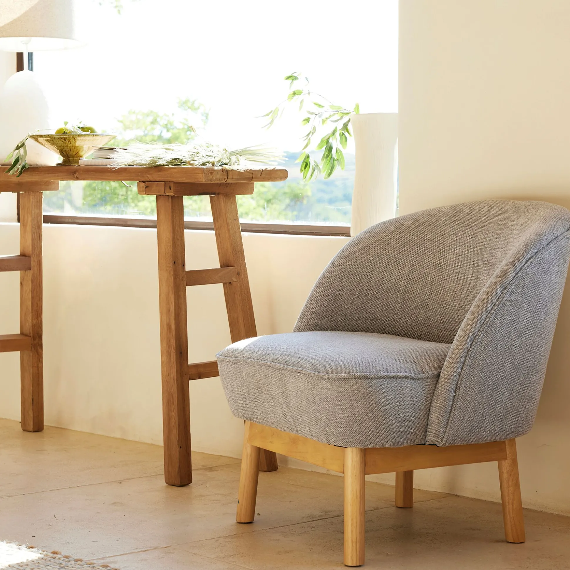 Découvrez Vallon, un fauteuil au look tendance qui offre un grand confort d’assise tout en ajoutant une touche de déco en plus à votre séjour. Son revêtement en tissu gris borie avec un effet chiné est subtilement contrasté par un piétement en bois d’hévéa naturel qui donne toute son originalité à ce siège. Installez-vous confortablement dans votre salon pour un moment de détente grâce à son large dossier enveloppant qui épouse parfaitement la courbe du dos. Il bénéficie également d’une assise large pour vous permettre d’adopter la meilleure position.