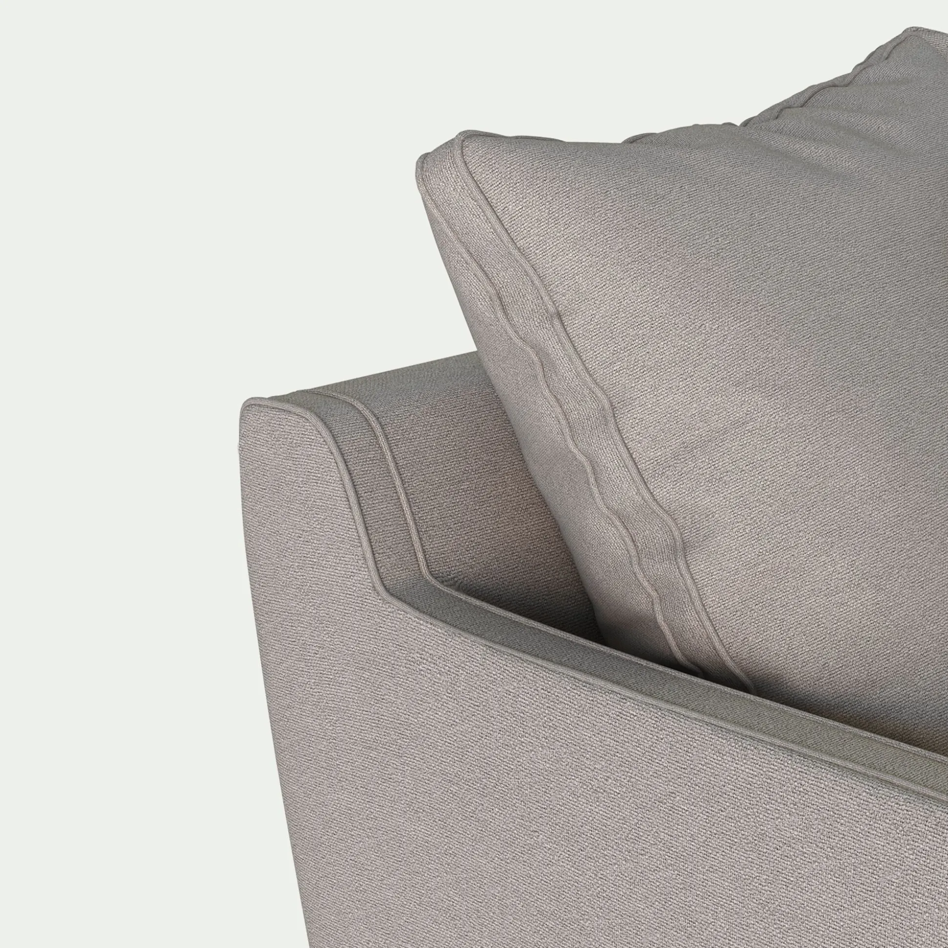 Assise et dossier : Assise en mousse polyuréthane densité 30kg/m3 et couette en fibre polyester. Coussin dossier garnissage plumes d’oie et fibre polyester.