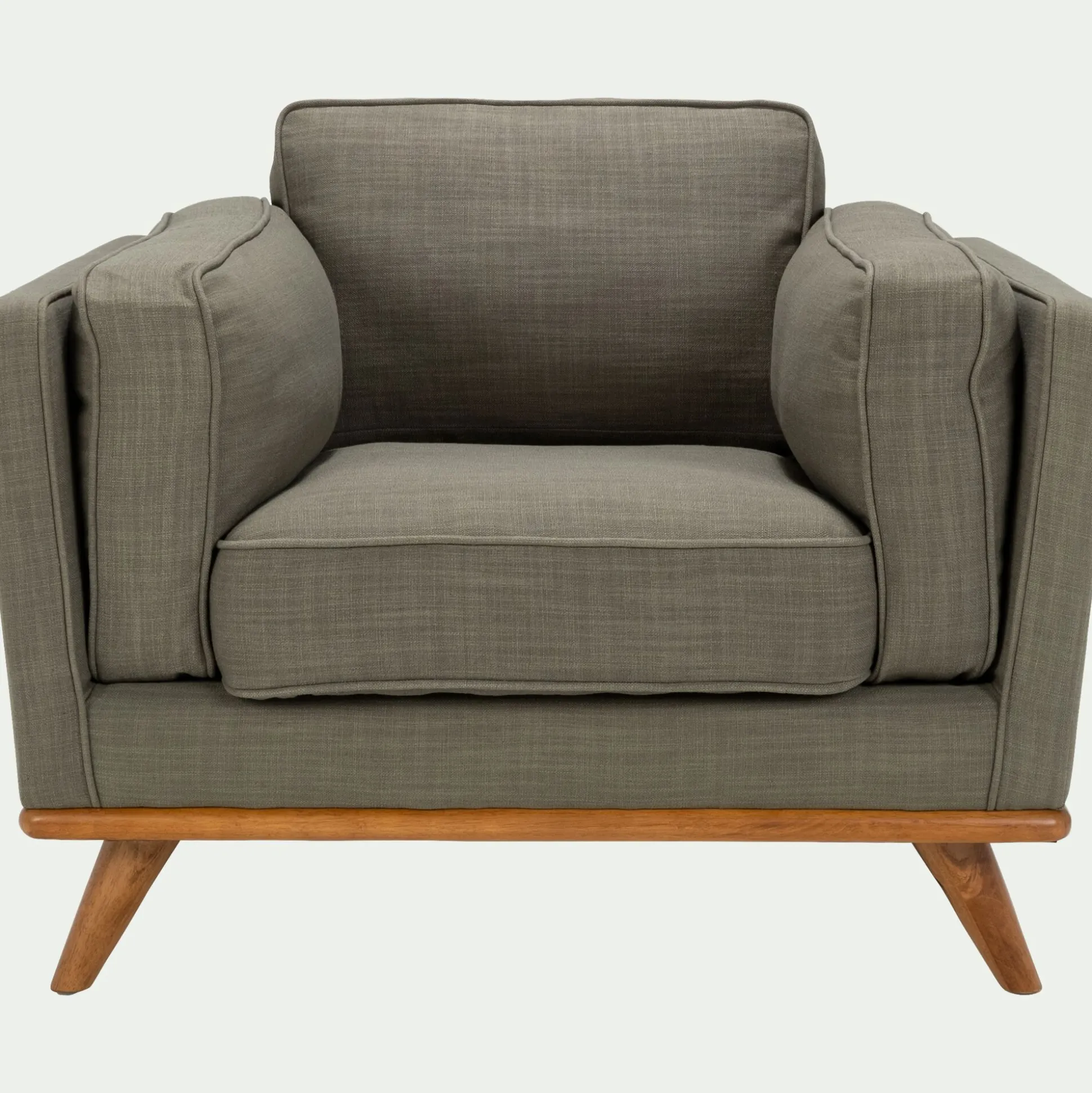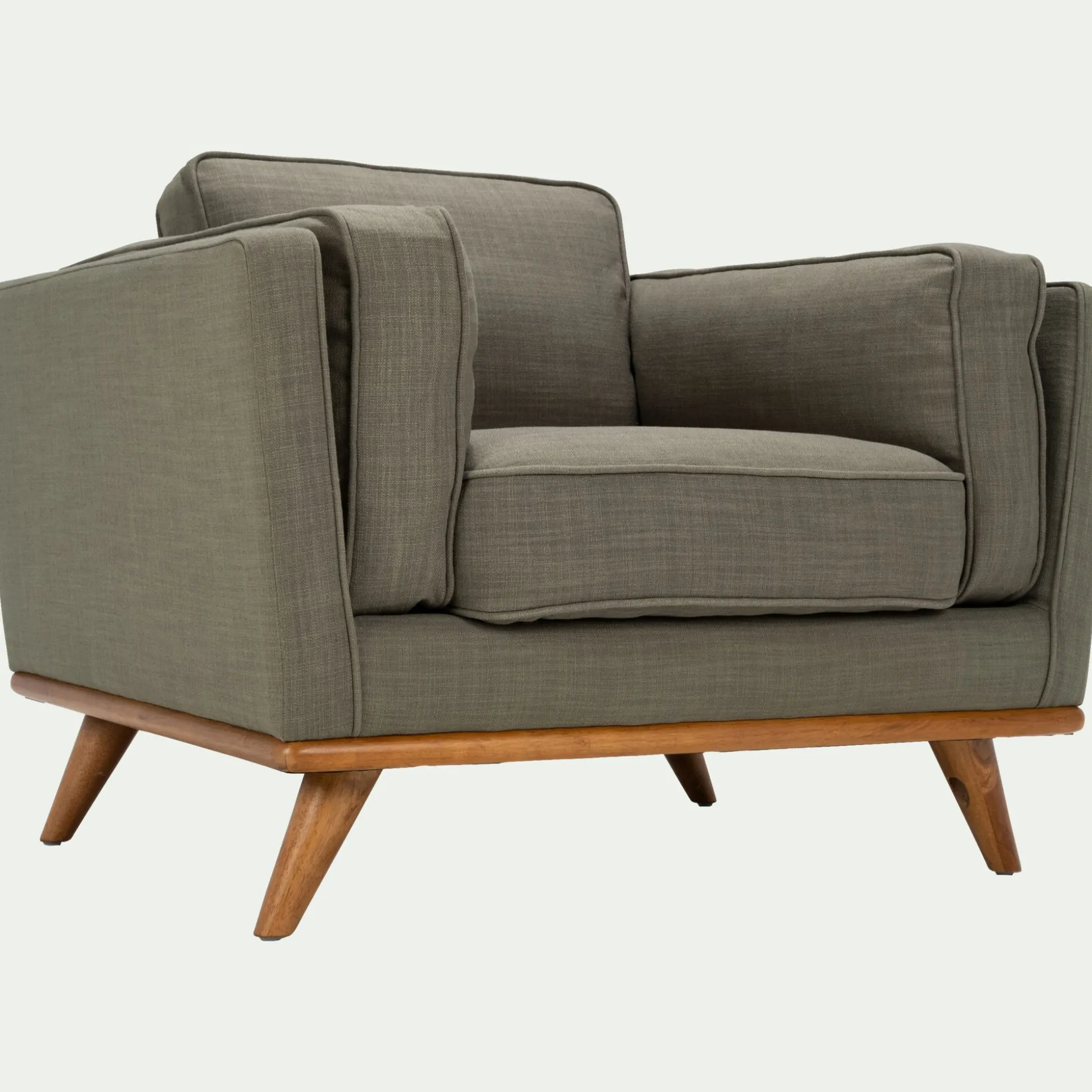 Un design enveloppant et généreux pour ce joli fauteuil en tissu qui apportera une belle touche de couleur dans votre salon. Souligné par une plateforme et un piètement en bois, ce fauteuil opte pour une allure vintage et raffinée qui donnera du cachet à votre pièce à vivre. Doté d’un garnissage en plumes, il vous propose un excellent confort d’assise pour des moments de détente parfaits ! Laissez-vous séduire par le canapé de la même gamme pour un espace détente complet.