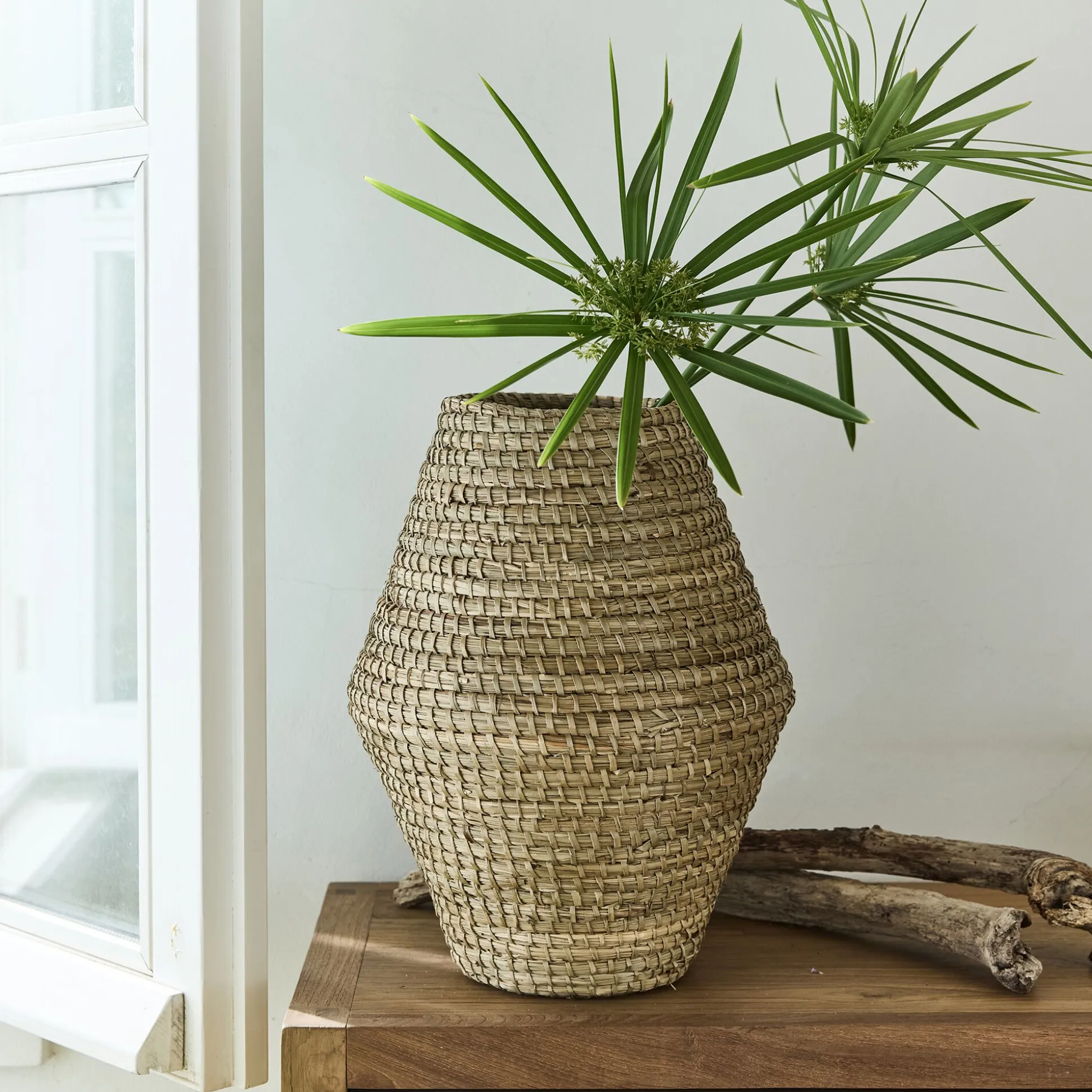 Choisissez le grand vase Fileb pour décorer votre intérieur. En jonc de mer tressé, ce vase apporte du charme à votre maison. Sa jolie couleur naturelle se marie avec tous types de décorations, qu’elles soient contemporaines ou même bohème. Haut de 40 cm, il décore un coin de votre salle à manger ou de votre chambre. Seul ou pour mettre e avant vos compositions florales séchées, il complétera avec élégance votre déco.