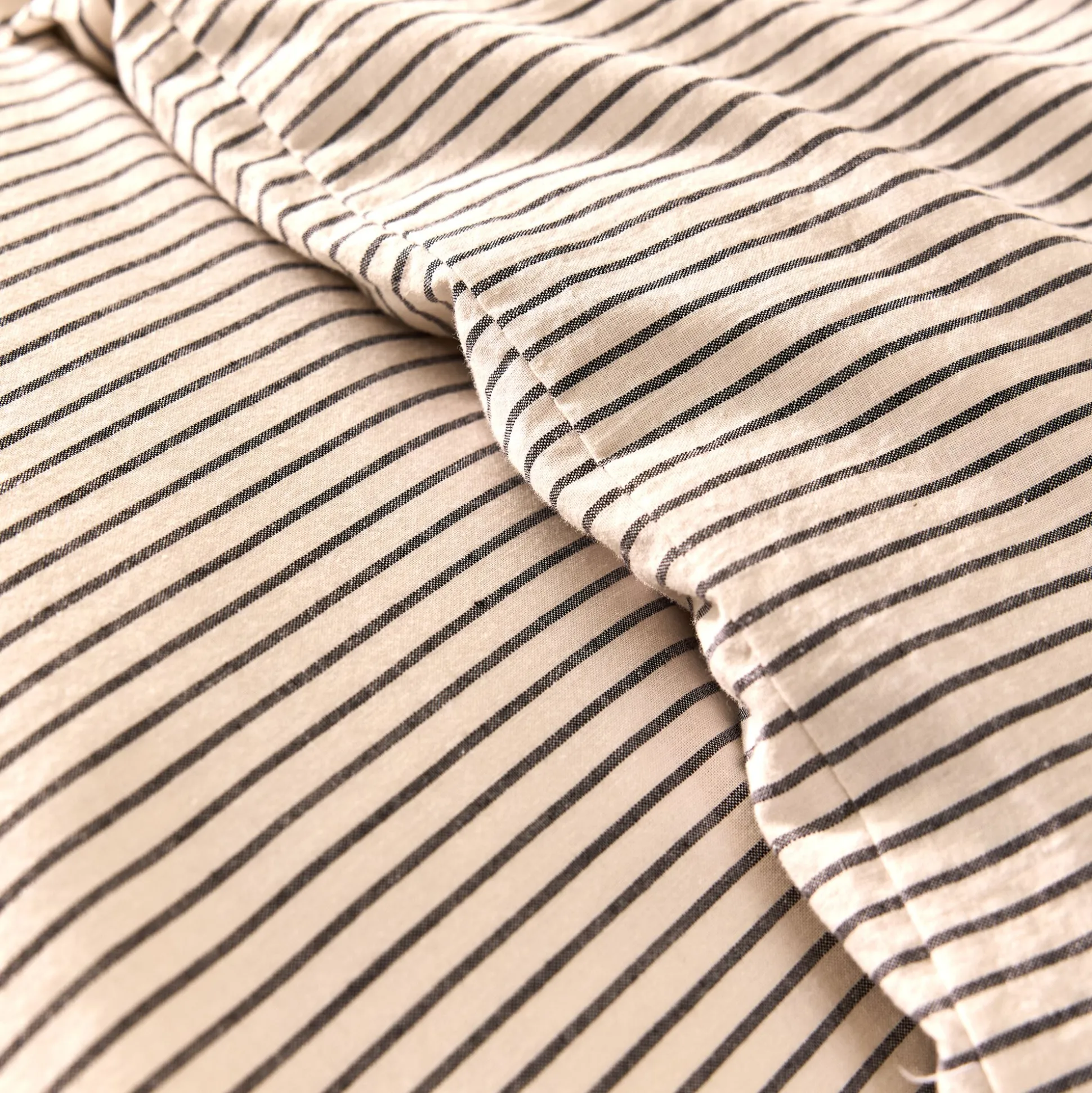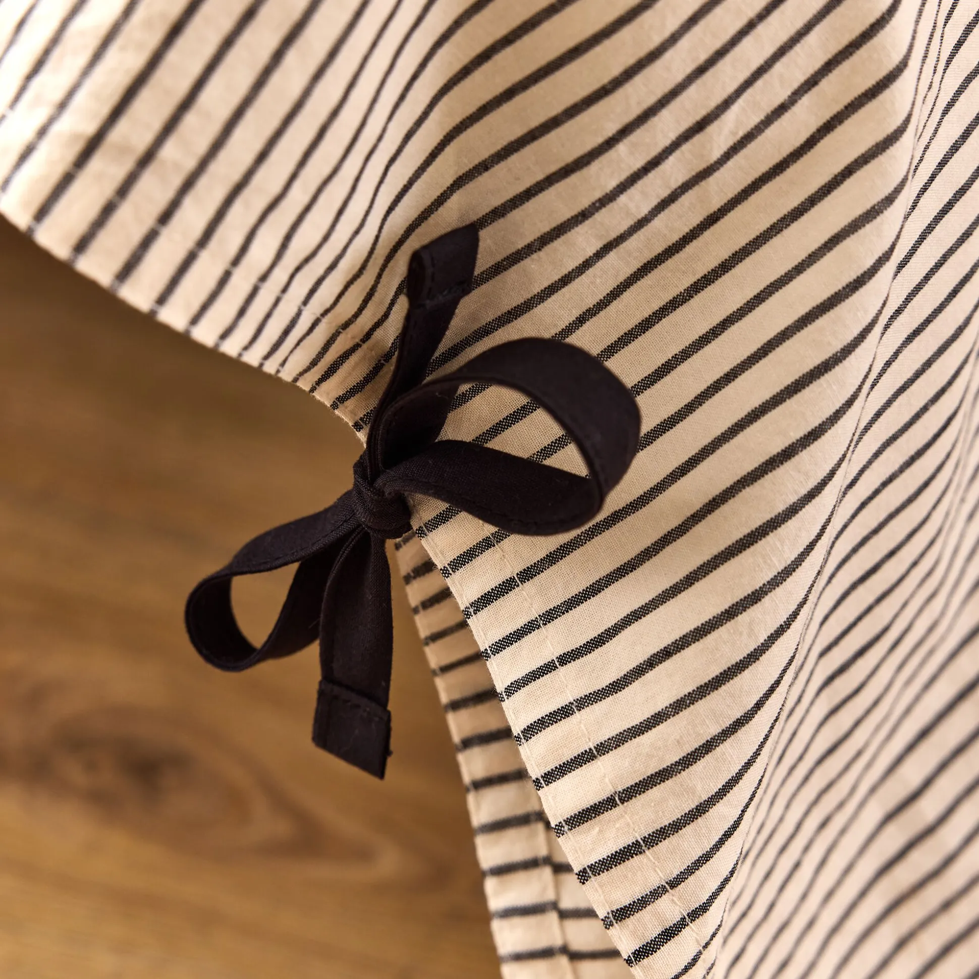 La housse de couette Maxine séduit par son allure à la fois simple et raffinée. Confectionnée en coton lavé certifié Oeko-Tex, elle offre une texture douce, souple et résistante. Son motif à fines rayures noires sur fond blanc incarne l’intemporalité et s’intègre aisément à tous les styles de chambre. La fermeture à nouettes, formée de jolis rubans épais, apporte une touche élégante et féminine à l’ensemble. Un linge de lit plein de charme, entre authenticité et modernité.