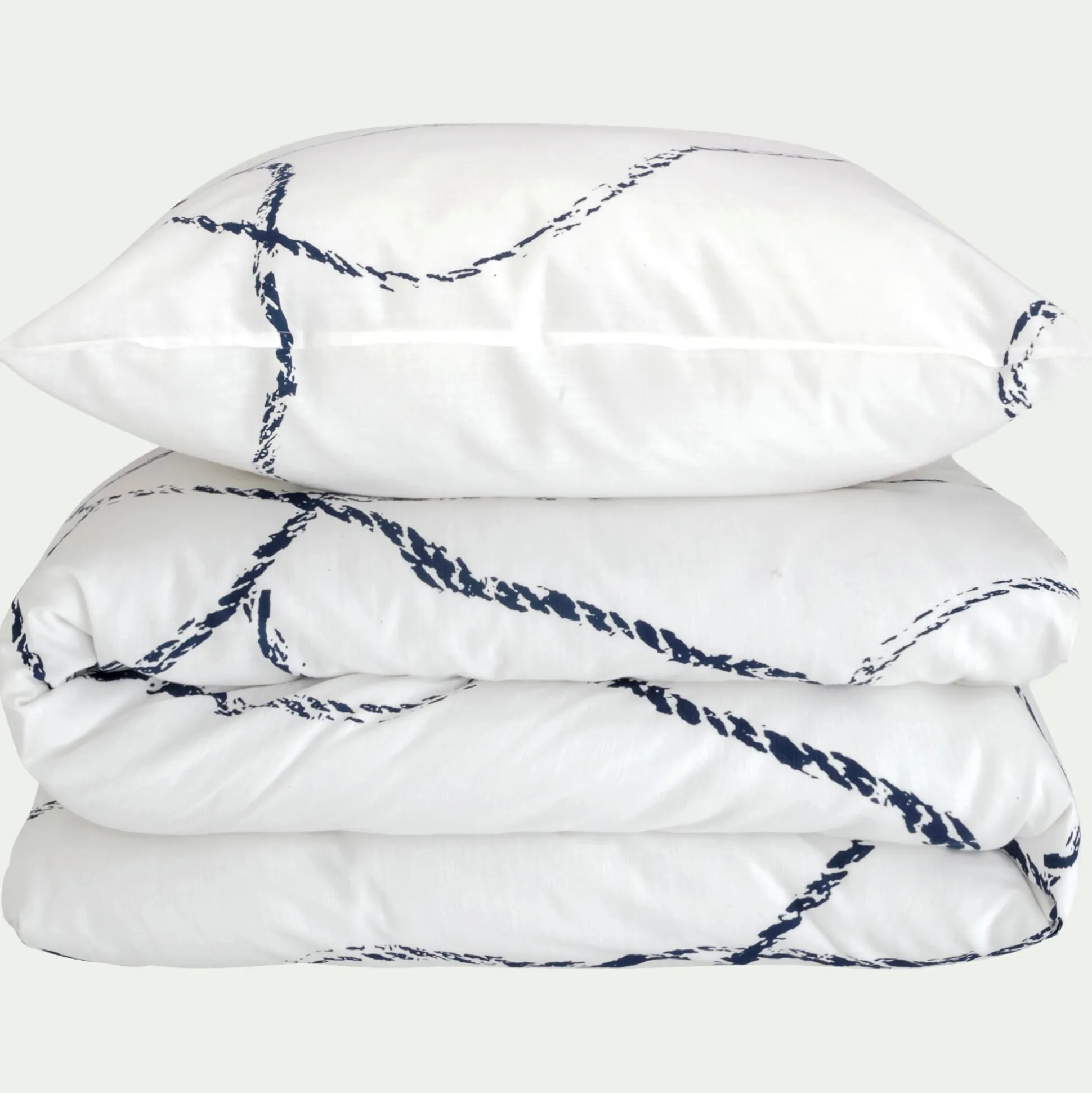 Plongez dans un cocon de douceur avec la parure de lit Alorso. Imaginez-vous enveloppé dans une housse de couette de 260×240 cm, accompagnée de deux taies d’oreiller assorties, le tout en coton flammé lavé, offrant une sensation de confort inégalé. Le motif bleu, évoquant un petit port de pêche, vous transporte dans un lieu apaisant. Une épaisse corde de bateau, habilement teintée dans le tissu blanc, ajoute une touche de caractère et de dynamisme à votre décor, évoquant des aventures en haute mer. Chaque nuit, plongez dans un sommeil réparateur et réconfortant, enveloppé dans cette parure qui transforme votre chambre en un havre de paix.