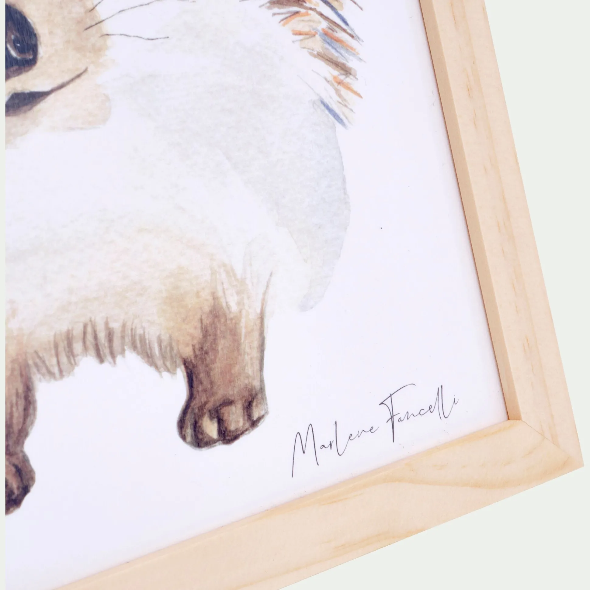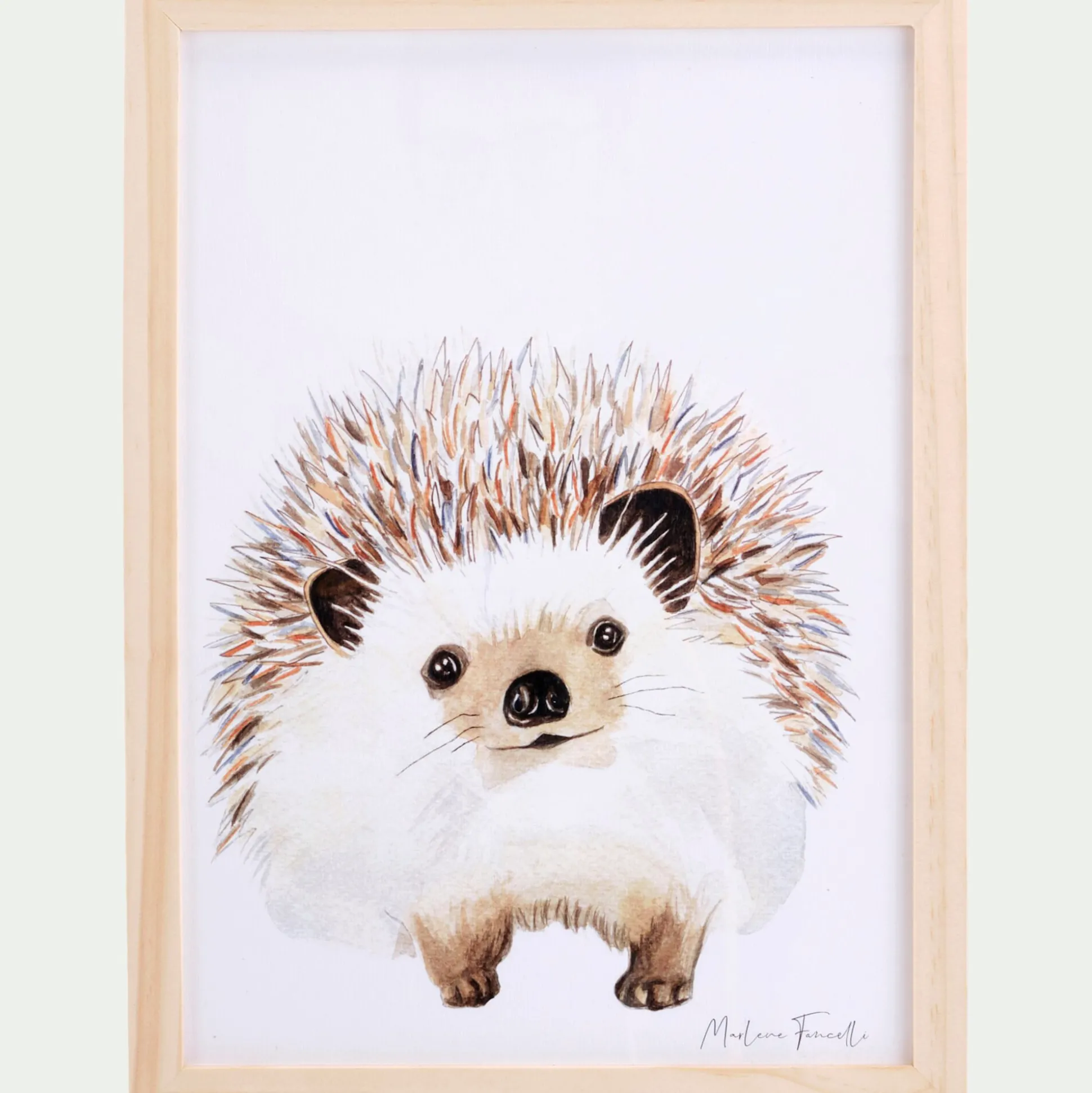Egayez la chambre enfant avec une aquarelle originale, peinte à la main par Marlène Farcelli. Cette décoration murale ou à poser participe à une ambiance cocooning. Ses nuances claires et naturelles mettent en scène un hérisson dans un univers doux et rassurant. Nommé Auré le Hérisson, ce petit animal sera le nouveau compagnon de votre enfant. Cette illustration enfant est aussi mignonne que ludique. Elle est mise en valeur par un cadre en pin massif et protégée par une vitre en plexiglas.