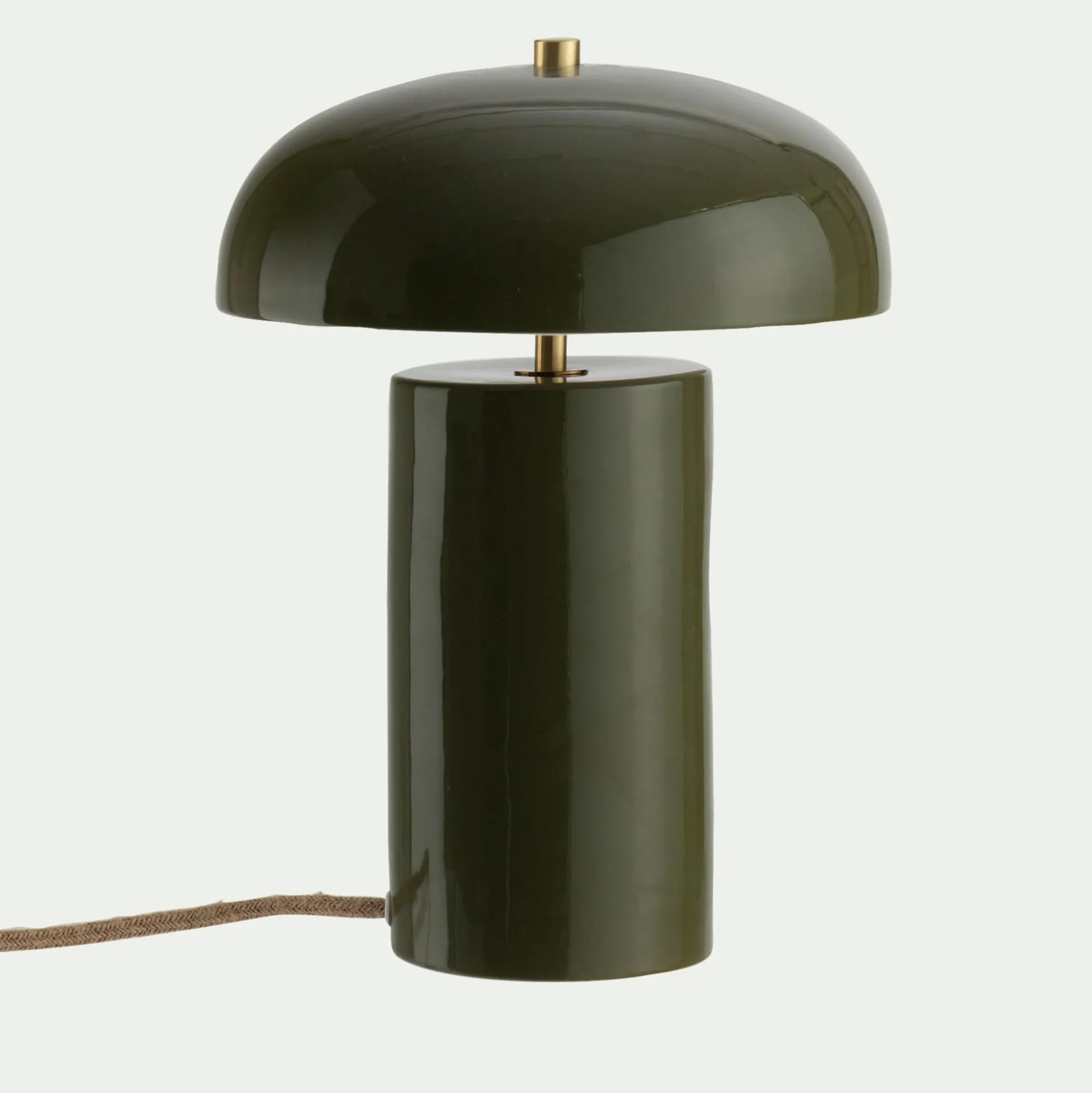 La lampe à poser Mael, entièrement réalisée en porcelaine brillante, se présente dans un vert monochrome qui lui confère une allure moderne et intemporelle. Son design en forme de champignon évoque le charme du style rétro, ajoutant une touche de nostalgie à votre intérieur. Idéale pour égayer un bureau ou une table d’appoint, cette lampe diffuse une lumière douce et agréable, créant une atmosphère chaleureuse.