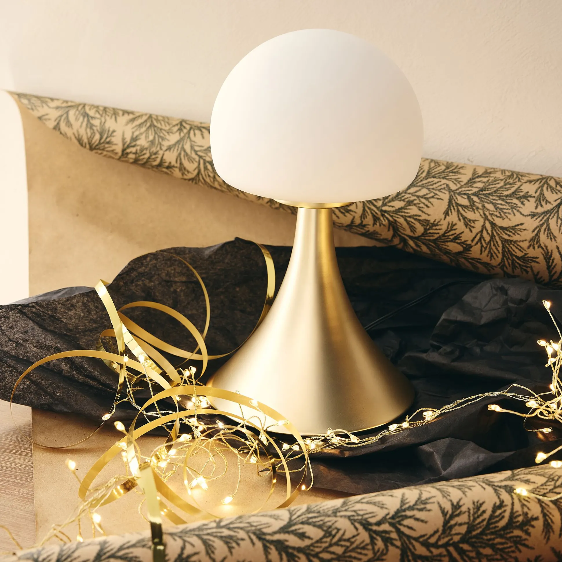 Cette jolie lampe vintage revisitée arbore une élégante forme de champignon. Son pied doré apporte une touche chic et raffinée à votre chambre à coucher. Une lampe à poser design qui vous permet de choisir votre intensité lumineuse. De ce fait, vous pouvez disposer d’une faible lumière pour continuer à lire lorsque votre moitié préfère dormir. Une lumière plus forte le matin lorsque vous avez besoin davantage de visibilité. Tactile, vous n’avez plus besoin de chercher l’interrupteur pour l’allumer, un simple effleurement, n’importe où sur la lampe, suffit à l’allumer.