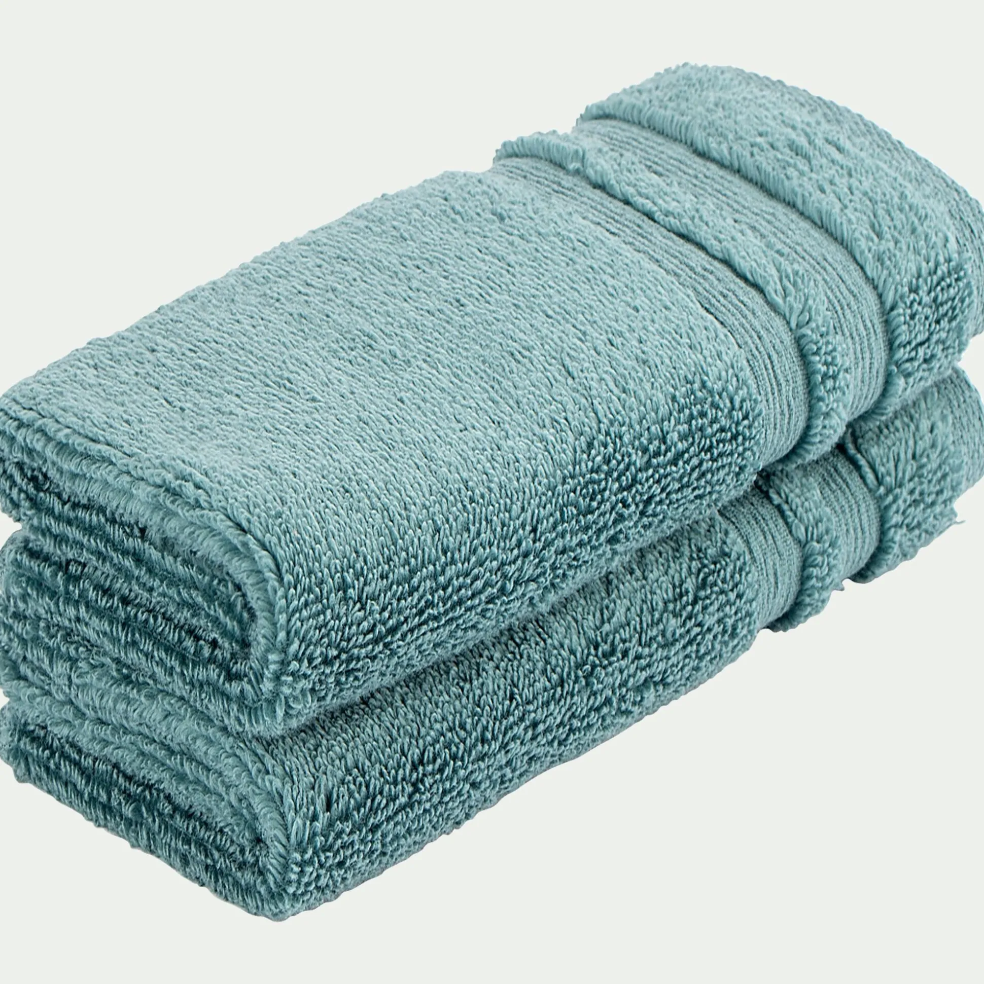 La salle de bains se transforme en un monde de douceur avec la gamme de linge de toilette Noun. Ce linge de toilette de qualité fabriqué au Portugal avec une bouclette en éponge « zéro torsion » résultant d’un tissage très rigoureux. Découvrez ce lot de 2 serviettes invité. Son coloris vert apporte une note de charme à la salle de bains, rappelant des paysages de la méditerranée. Complétez ce linge de toilette avec le reste de la collection de la même couleur qui se compose de gant de toilette, serviette de bain et drap de bain. Cette gamme est disponible dans d’autres couleurs.