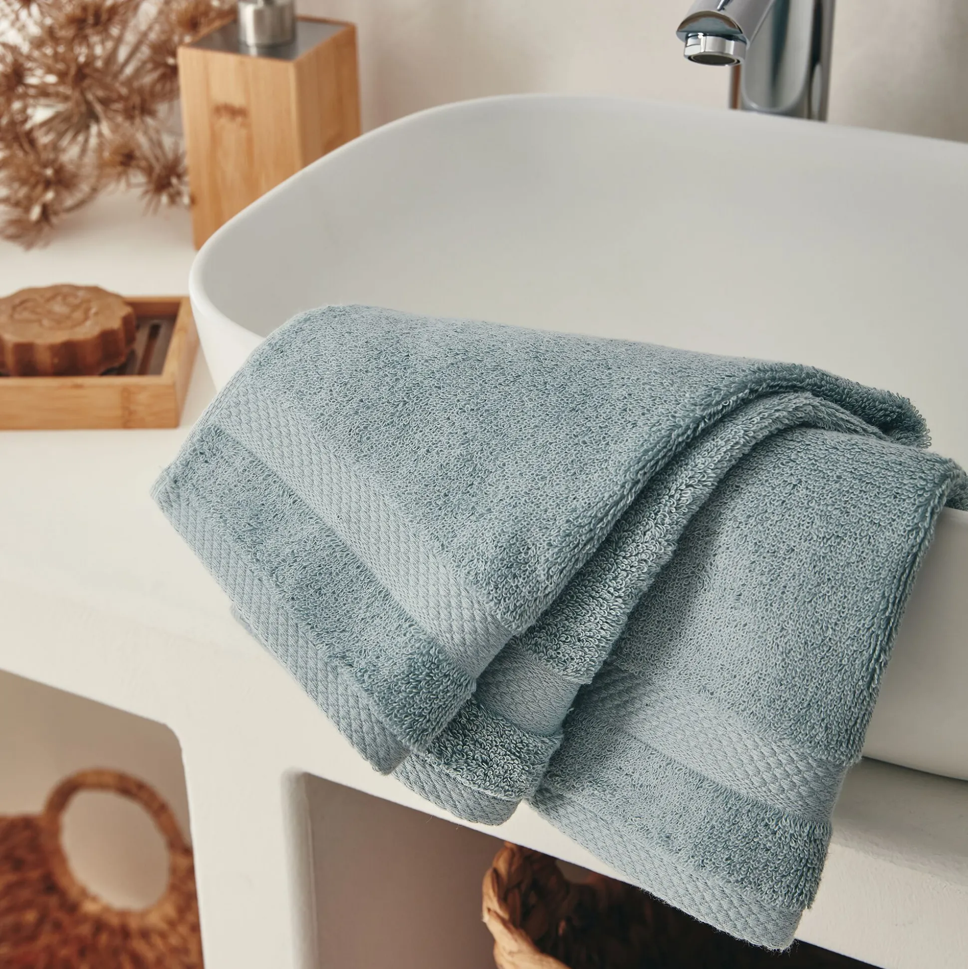 Lot de 2 serviettes invité en coton peigné – bleu calaluna 30x50cm