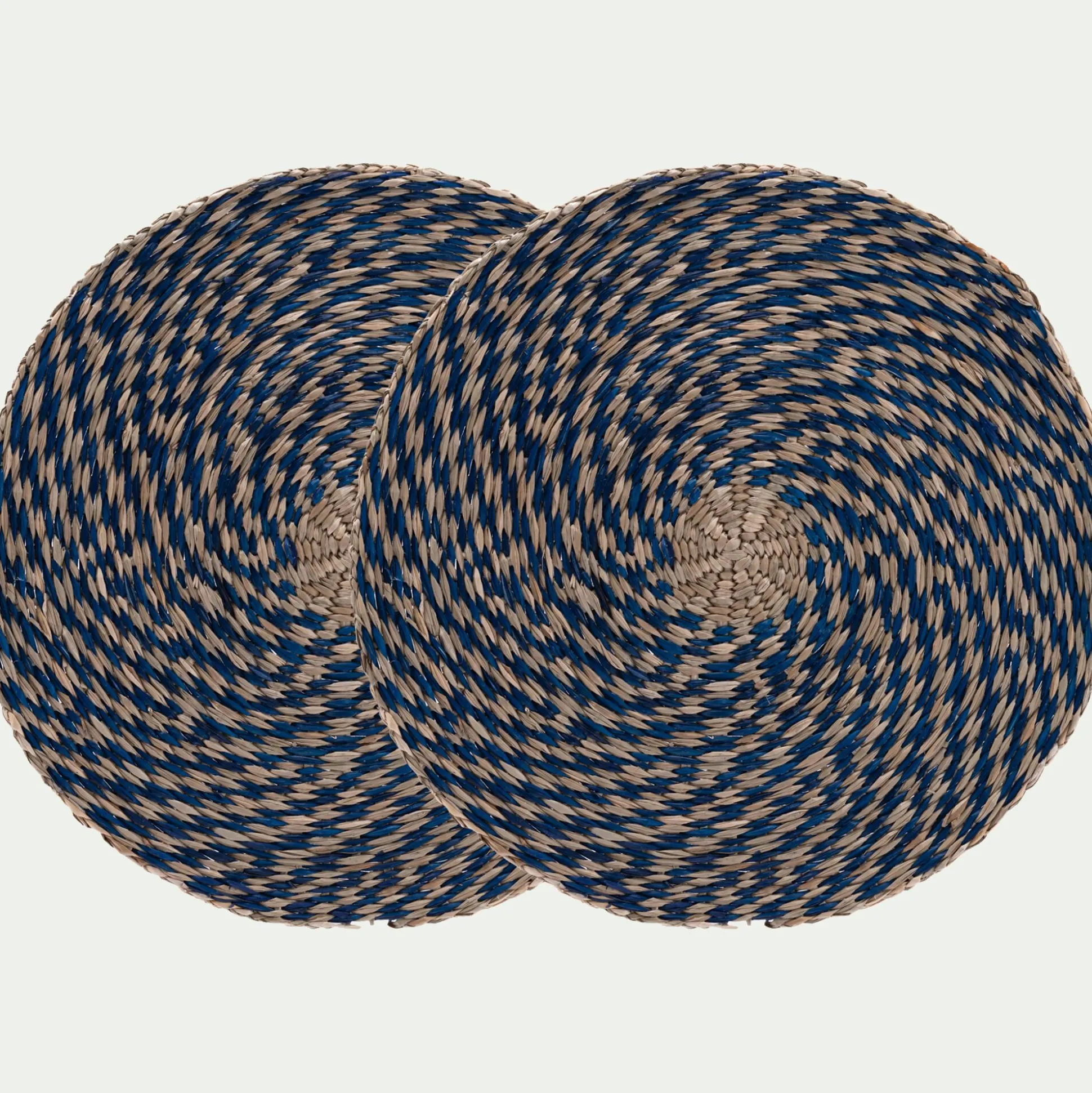 Le lot de 2 sets de table Joseon apporte une touche chaleureuse et graphique à l’art de la table. Ronds et tressés en jonc de mer, ces sets marient fibres naturelles et fibres teintées en bleu dans un motif en spirale captivant. À la fois décoratifs et protecteurs, ils habillent élégamment la table tout en préservant sa surface.
