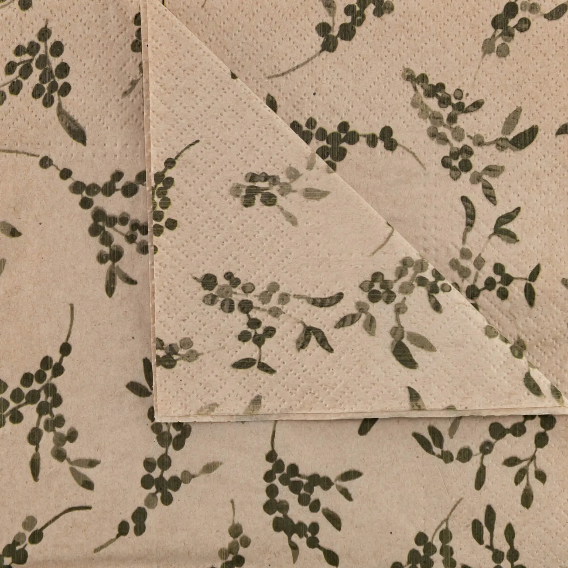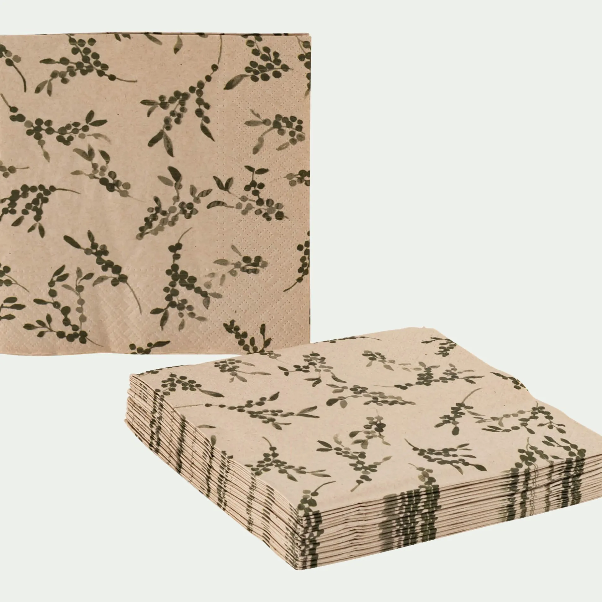 Lot de 20 serviettes en papier motif à fleurs 33x33cm – beige alpilles