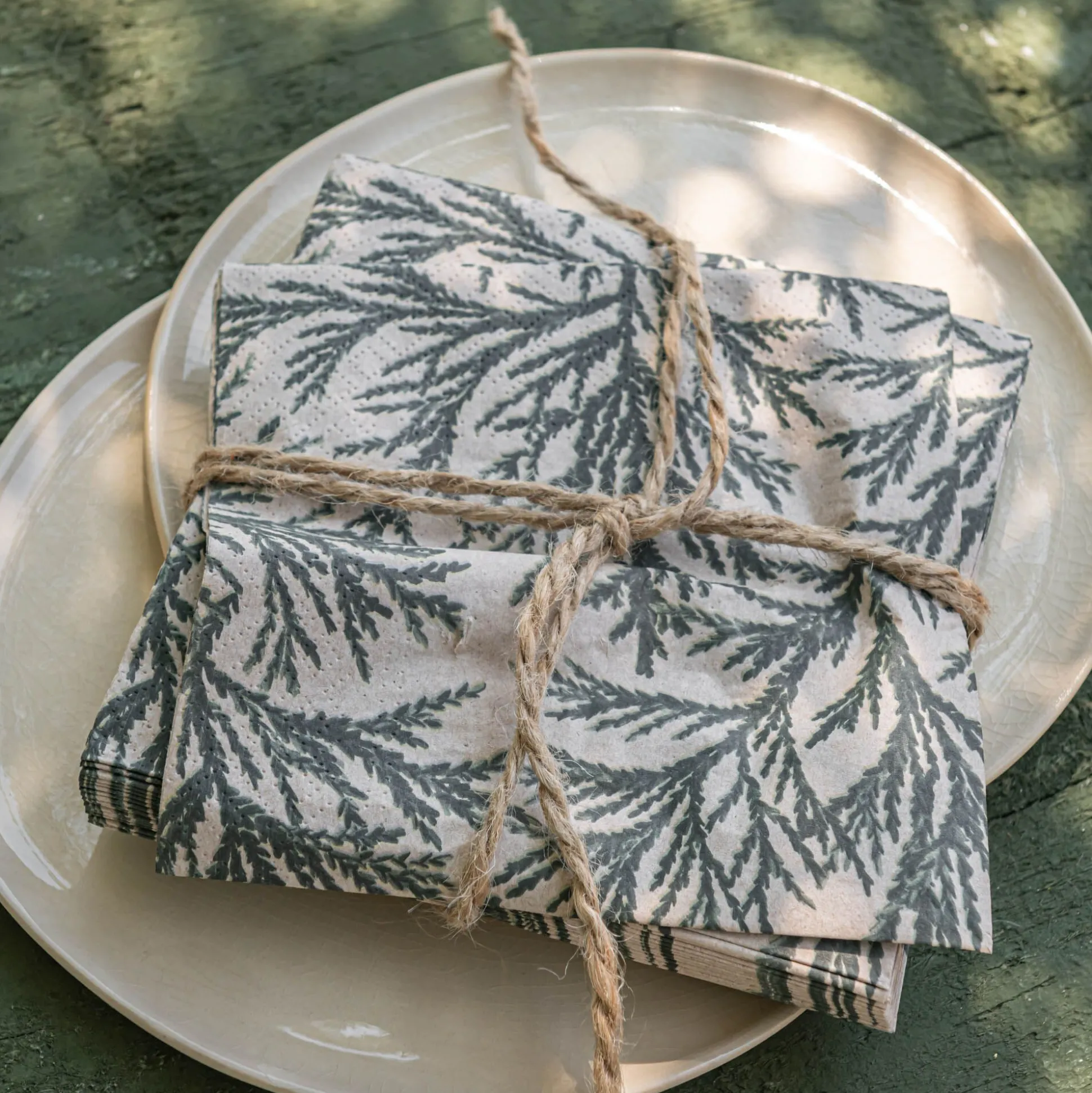 Ces serviettes en papier, d’un beige doux parsemé de motifs de cyprès, ajoutent une touche décorative raffinée à vos repas. Le coloris vert des cyprès crée une ambiance chaleureuse et naturelle, parfaite pour une table élégante et soignée. Un choix idéal pour sublimer vos repas avec une note discrète mais stylée.