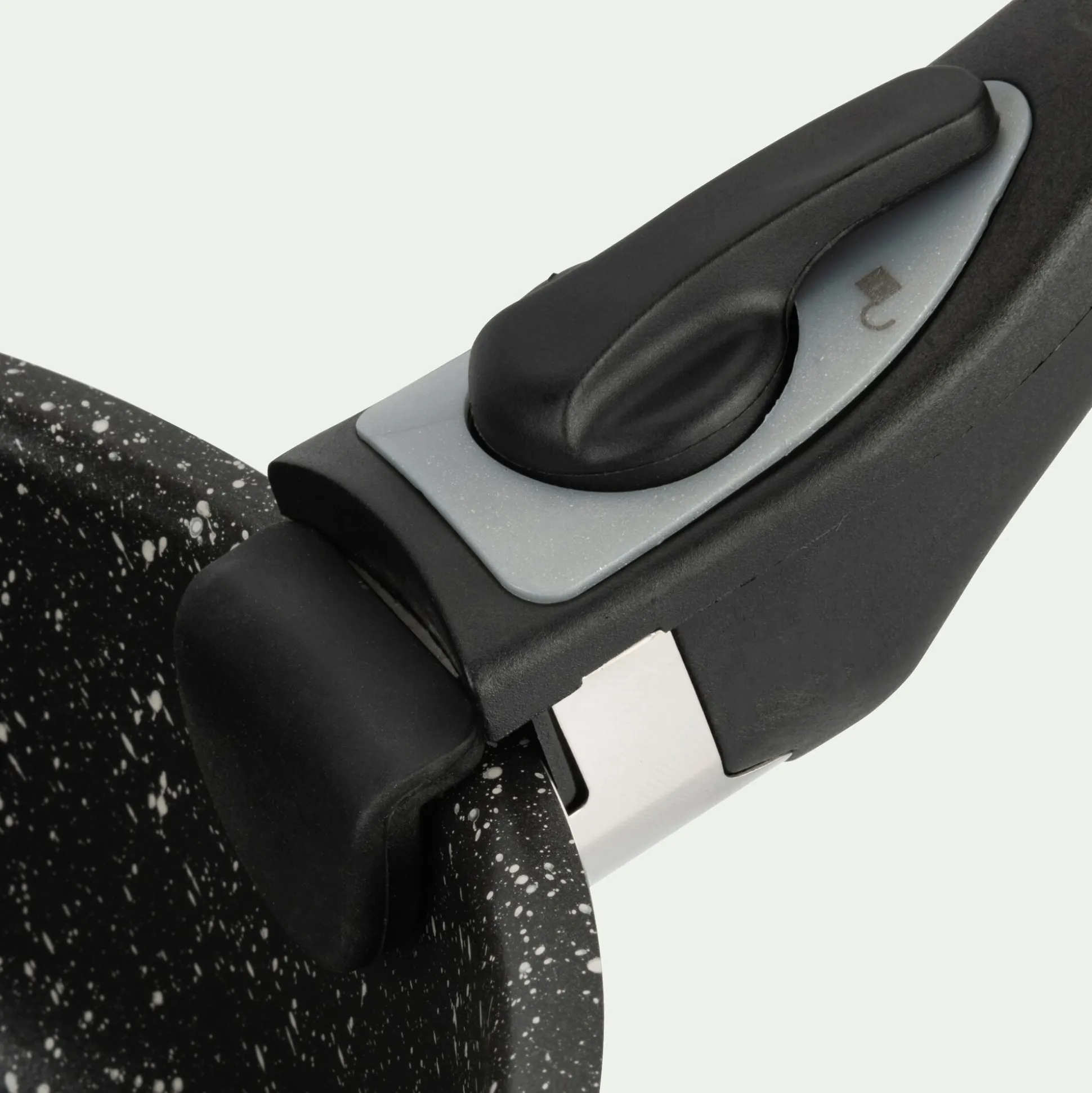 Ce lot de 3 casseroles noires de diamètre 16, 18 et 20 cm avec un manche amovible pour un rangement facilité. Avec leur revêtement anti-adhésif, vous pourrez cuisiner en toute tranquilité. Très pratique, elles s’adaptent à tous feux y compris induction.