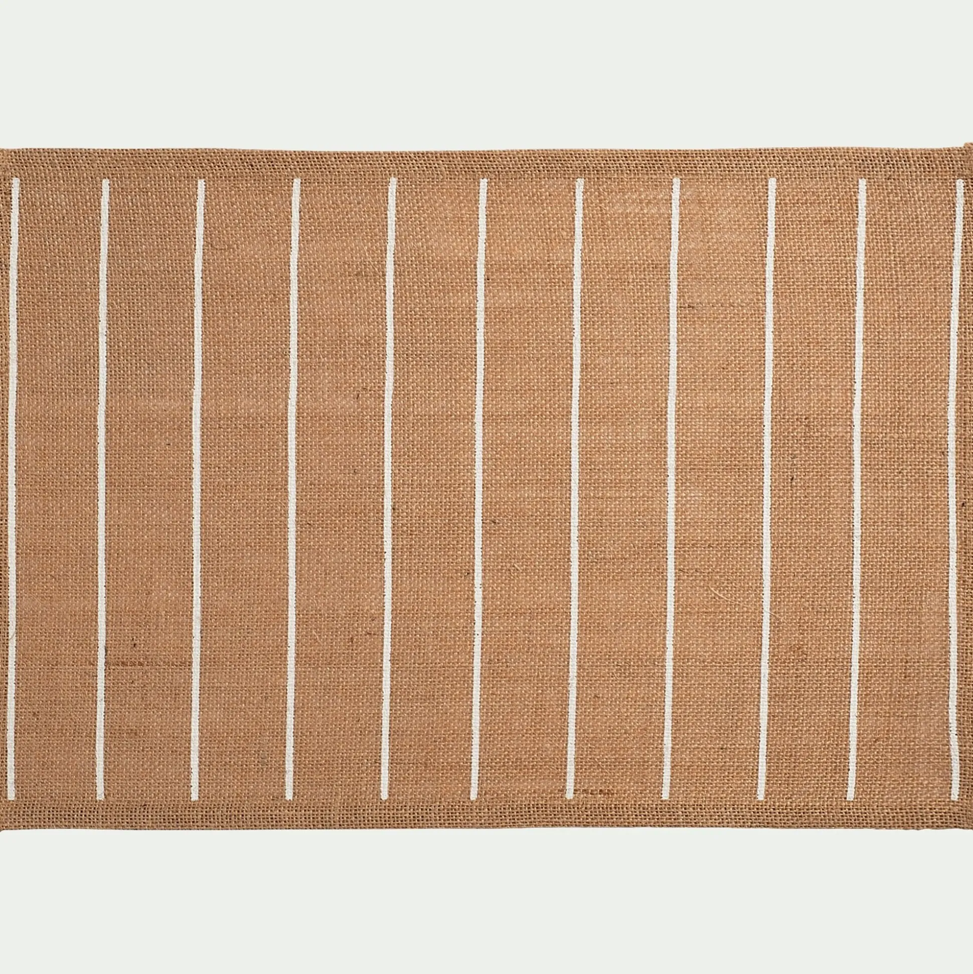 Les 4 sets Uzes trouvent leur place autour de votre table et participent à une atmosphère chaleureuse et authentique. Ces sets de table en jute mesurent 30×45 cm et présentent un motif minimaliste et intemporel : la rayure. Ce motif blanc se découpe sur la toile aux reflets dorés, une finition simple mais élégante qui apporte une touche décorative à toutes les occasions.
