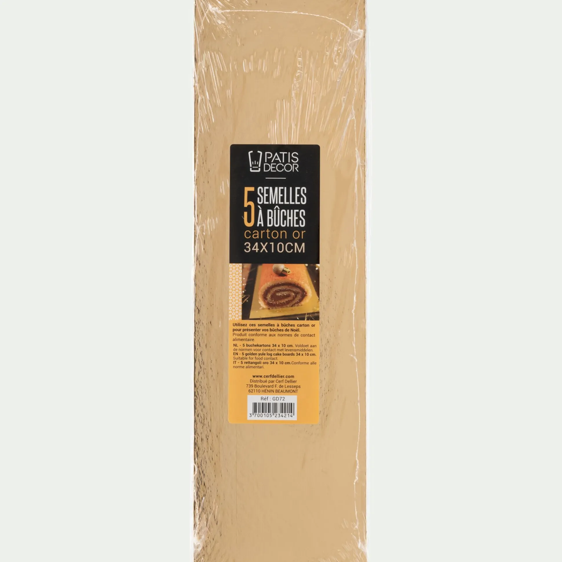 Lot de 5 semelles à bûches en carton 10x34cm – doré