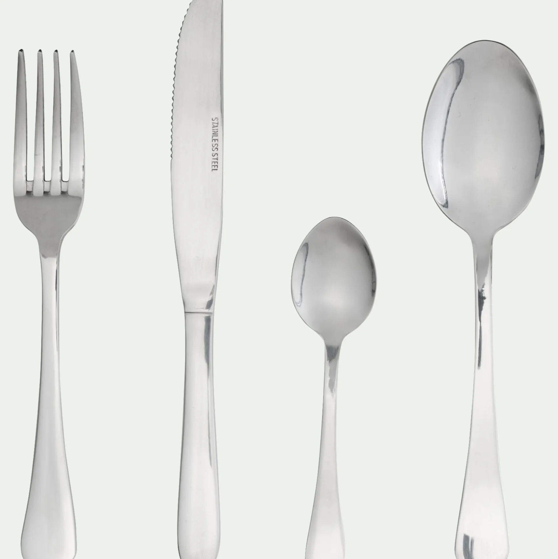 Dressez une table intemporelle et élégante avec la ménagère 24 pièces Scolime. Cet ensemble de couverts argentés se compose de 6 fourchettes, 6 couteaux, 6 cuillères à soupe et 6 petites cuillères. Confectionnés en acier inoxydable, ces couverts arborent une finition polie. Le métal est légèrement mat, donnant à cette ménagère argentée un design moderne. Ces 24 couverts en inox sont compatibles avec l’utilisation du lave-vaisselle pour un usage quotidien facilité.