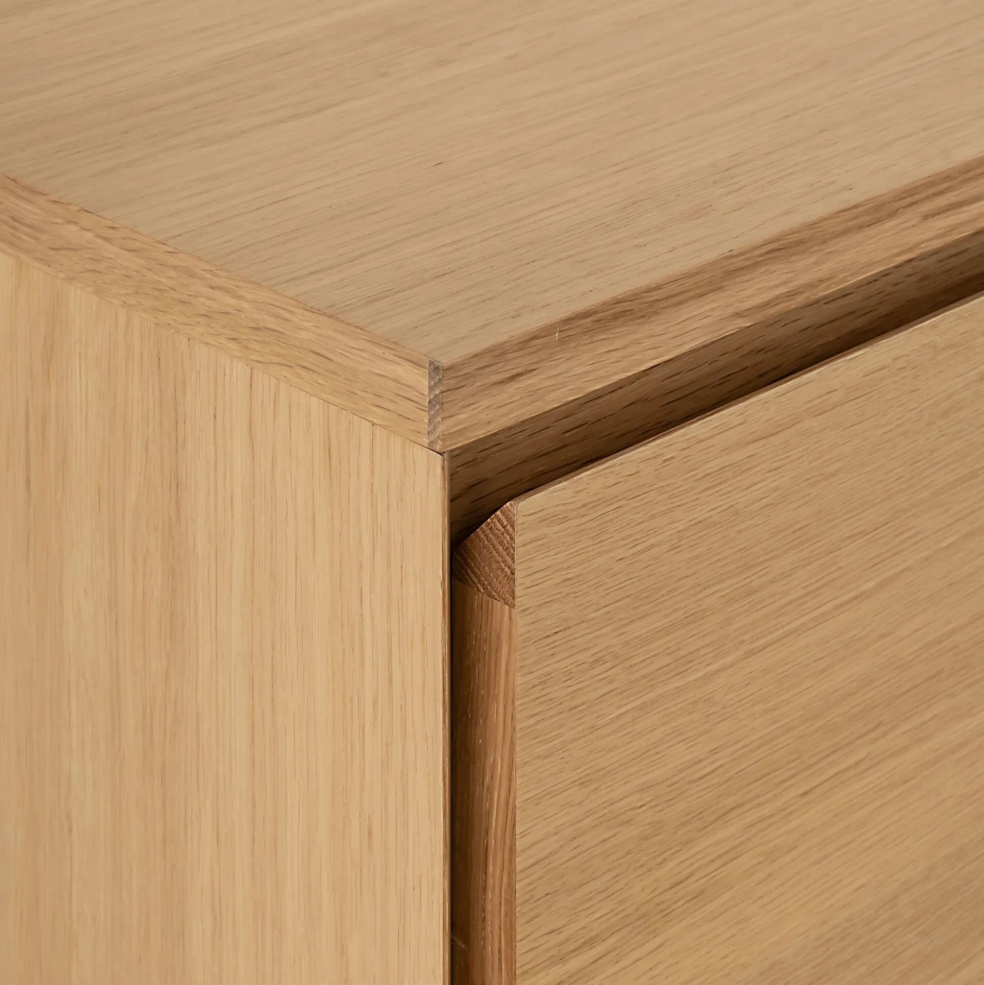 Structure caisses et façades en panneaux de fibres de particules de moyenne densité en placage chêne blanc finition vernis.