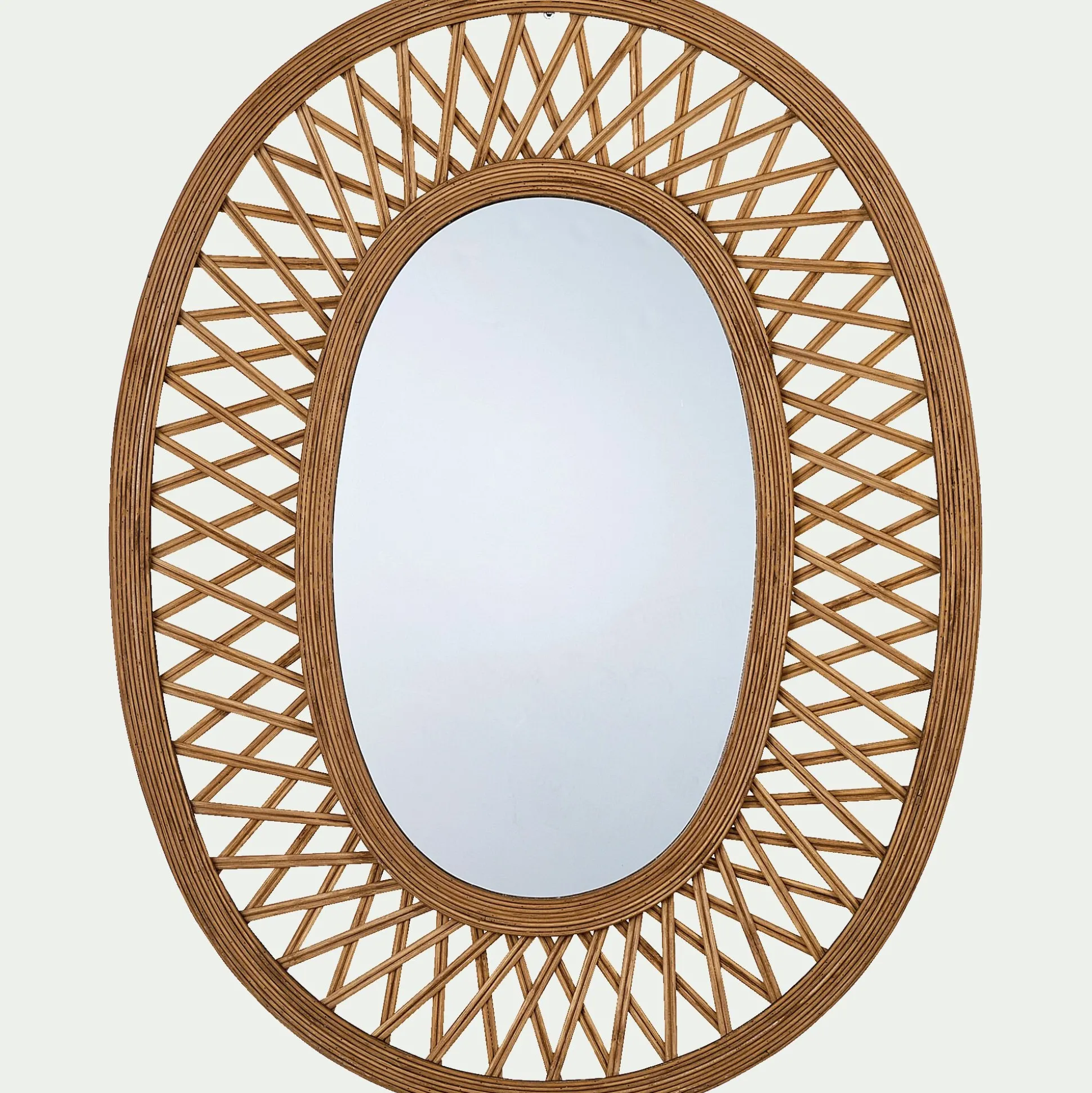 Succombez à la tendance du cannage avec ce grand miroir mural en bambou. Ce savoir-faire artisanal se décline dans différents types de bois et différents objets du quotidien. Un miroir en cannage est une pièce de caractère qui s’intégrera à tous les types de décorations. Art déco, ethnique, naturelle, moderne… La déco se crée et prend vie autour de ce miroir en bambou. Les fibres naturelles se courbent et se croisent grâcieusement pour un résultat soigné et élégant. Dans l’air du temps, le cannage apporte de l’authenticité et de la chaleur à vos pièces.