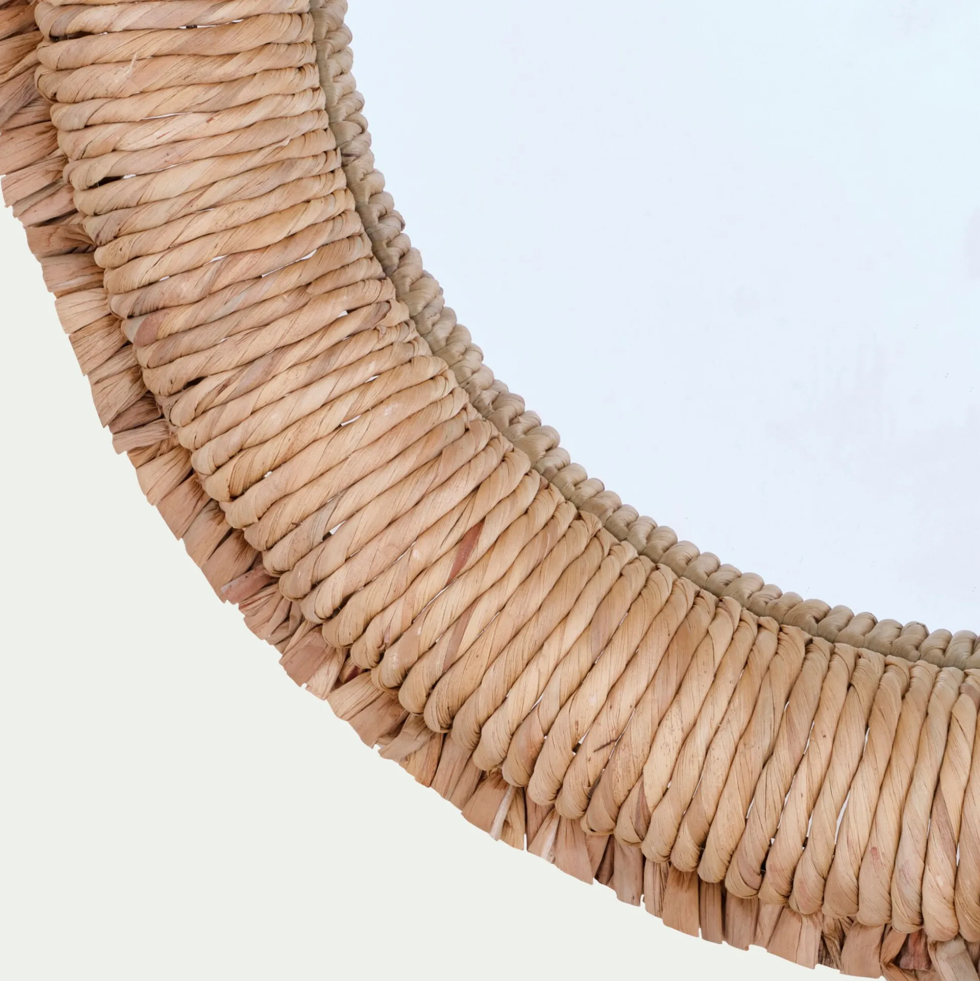 Élégant et chaleureux, le miroir Vivienne prend place sur un mur pour l’égayer. Le miroir seul mesure 40 cm de diamètre. Avec son cadre tressé en jacinthe d’eau, il atteint la taille généreuse de 61 cm de diamètre. Ce miroir mural aux accents naturels s’inspire d’un design subtilement rustique. La forme ronde soutient des airs plus contemporains. Cette décoration murale tout en équilibre trouve sa place dans toutes les pièces de la maison et s’intègre avec harmonie.