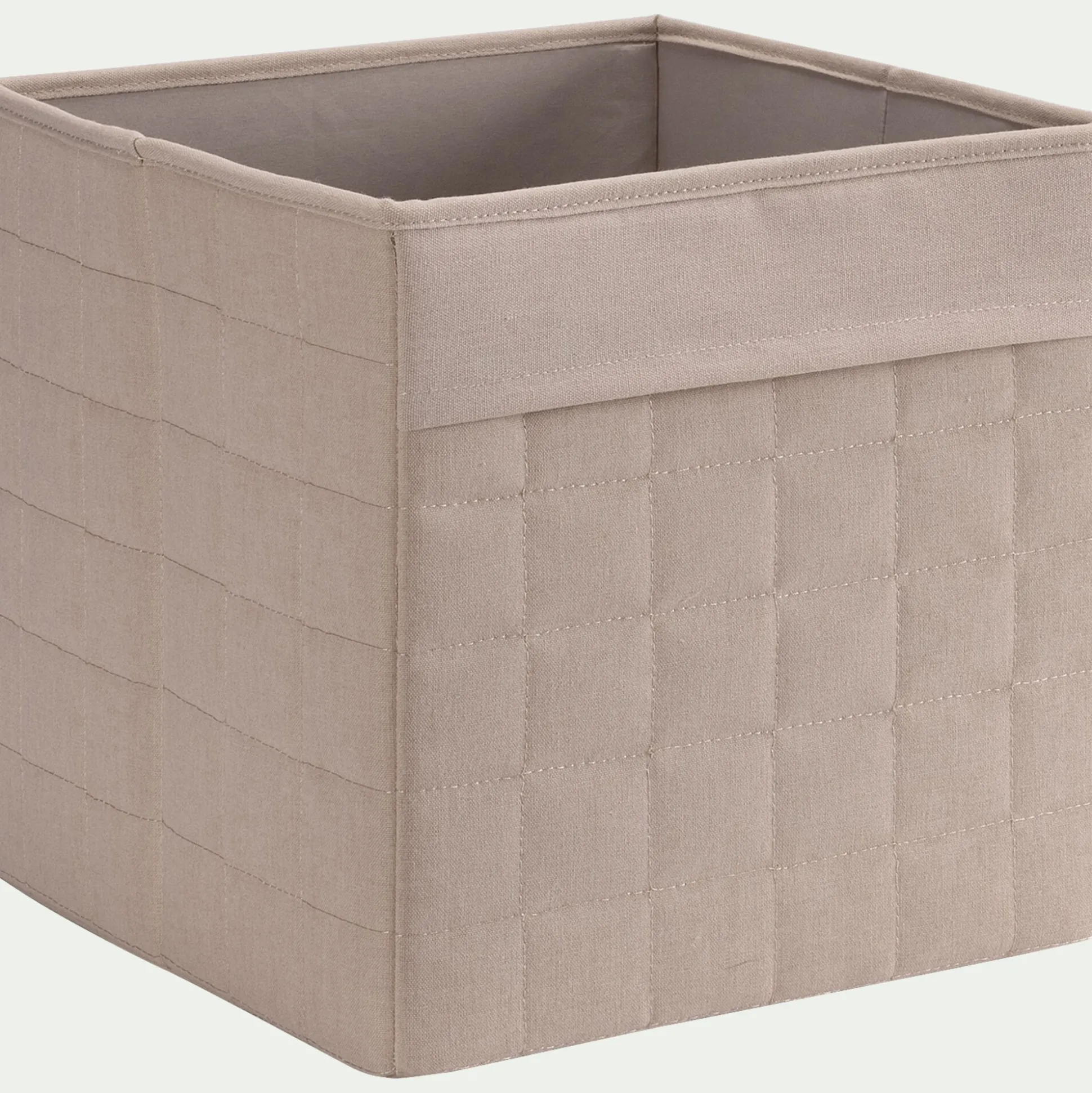Avec sa forme cubique de 30 cm de côté, le panier Peyrolles s’adapte facilement à toutes les pièces de la maison. En tissu beige au fini matelassé, il apporte une touche chaleureuse grâce à ses coutures blanches. Sans couvercle, il reste toujours accessible et pratique pour ranger des jeux, du linge ou des accessoires du quotidien. Son format compact en fait un bel élément déco à glisser sur une étagère ou dans un meuble ouvert.
