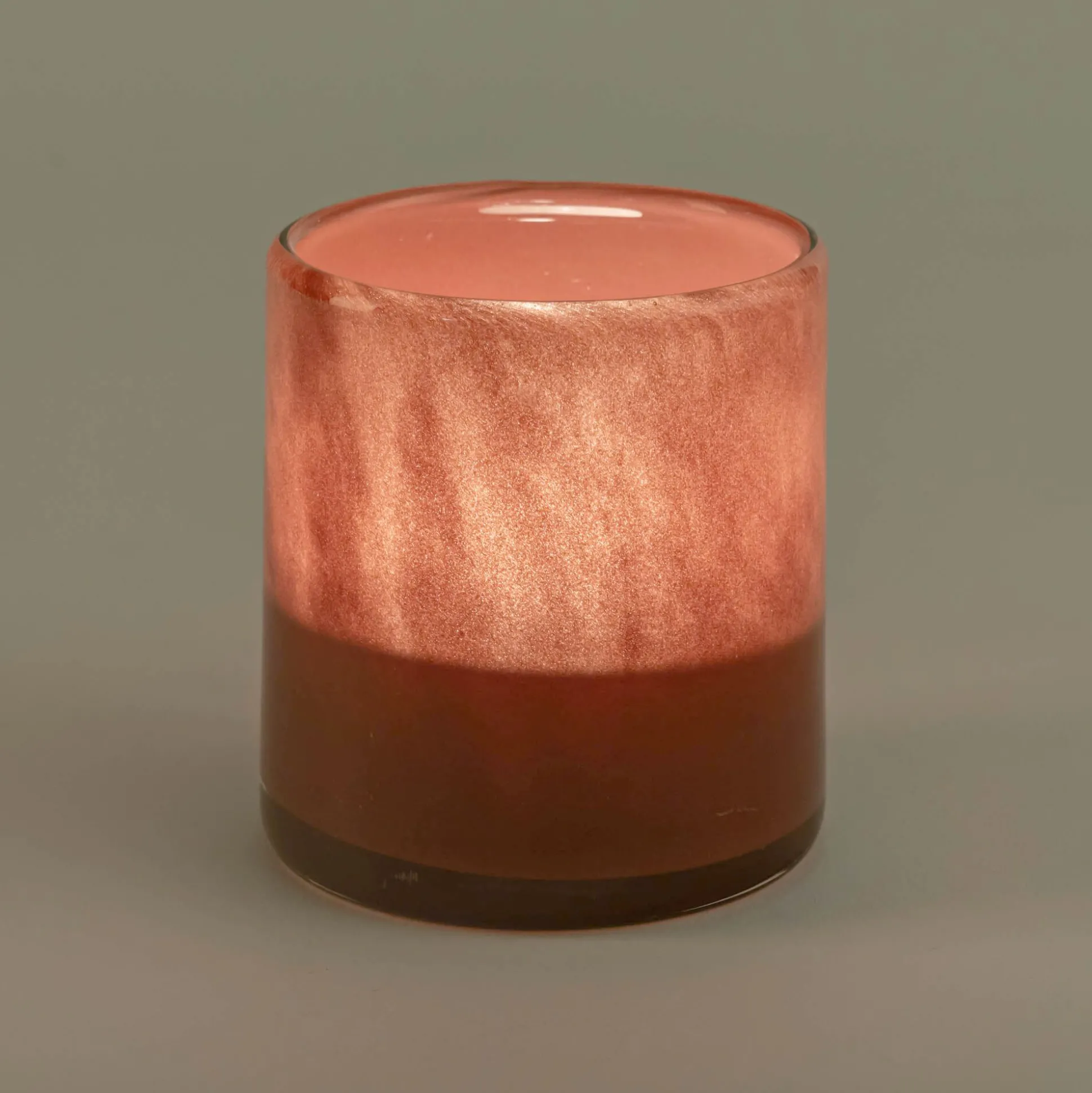 Avec sa forme cylindrique et son verre sodocalcique opaque, ce photophore joue la carte de la sobriété. Son coloris marron, chaleureux et profond, diffuse une lumière douce une fois la bougie allumée. Il peut accueillir une bougie ronde jusqu’à 8 cm de diamètre. Une pièce simple, mais pleine de caractère, idéale pour créer une ambiance cosy au fil des saisons.