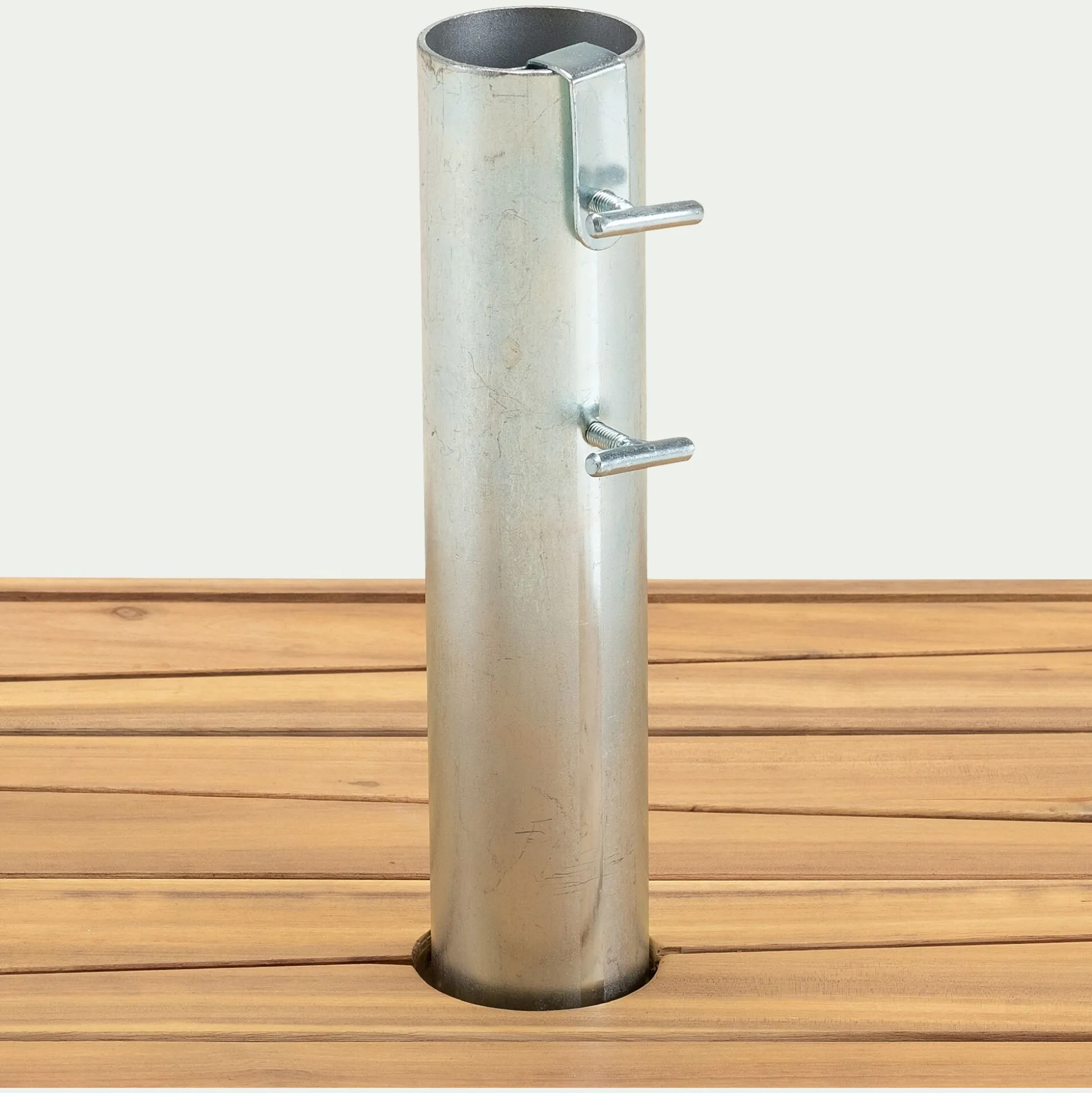 Ce pied de parasol au design chic et épuré est l’accessoire indispensable qui vient compléter votre parasol. Il présente un style intemporel et une association de matières qui saura s’accorder avec tous types de sols et de déco extérieure. Sa base carrée en bois d’acacia permet d’offrir une stabilité parfaite à votre parasol et de profiter des beaux jours, en plein air, et en toute sécurité. Ce pied de parasol est un essentiel des accessoires de jardin.
